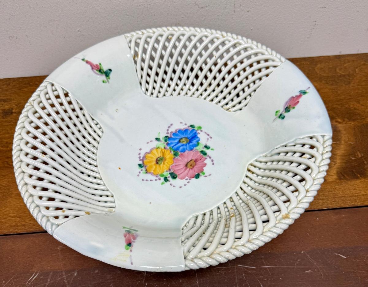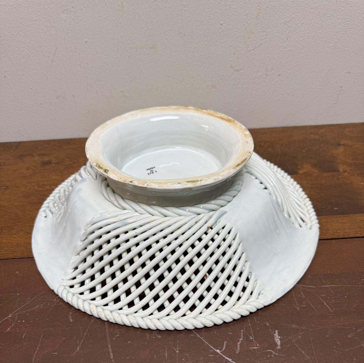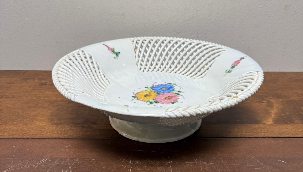 Vintage Porcelain Ceramic Lattice Fruit Pedestal Bowl