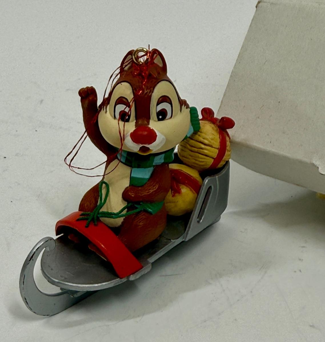 Disney Collector Ornament Chipmunk Dale on ice skate sled