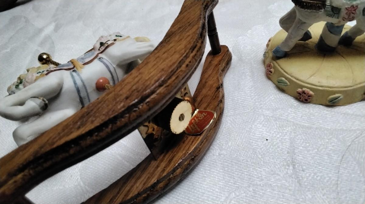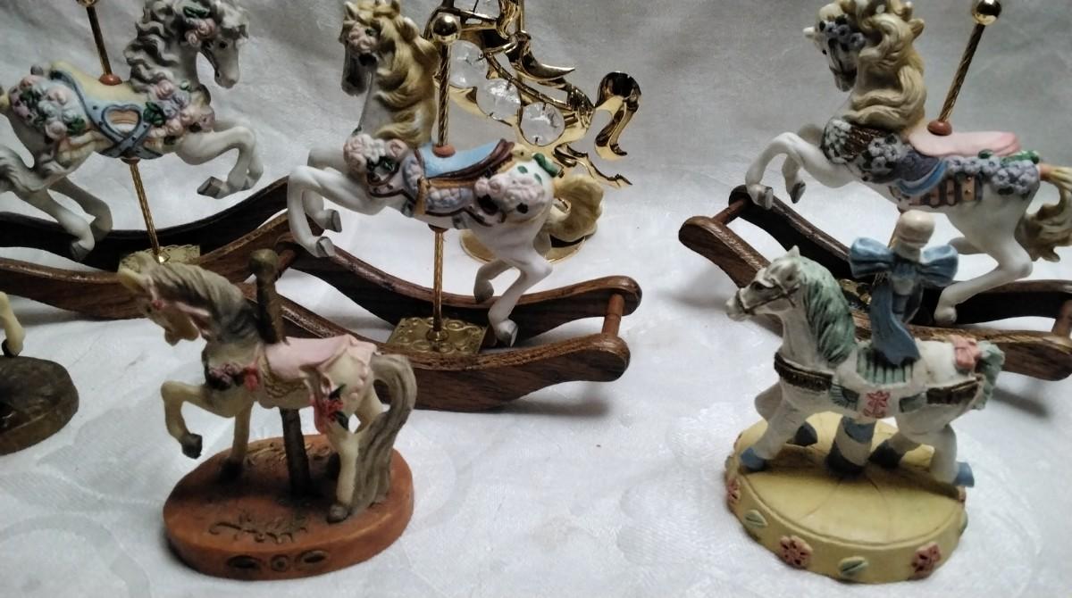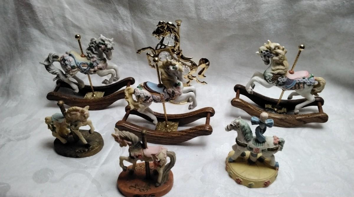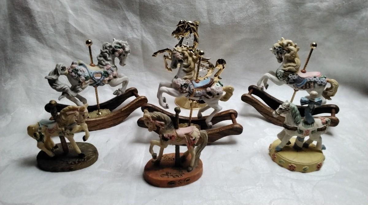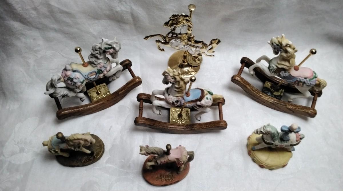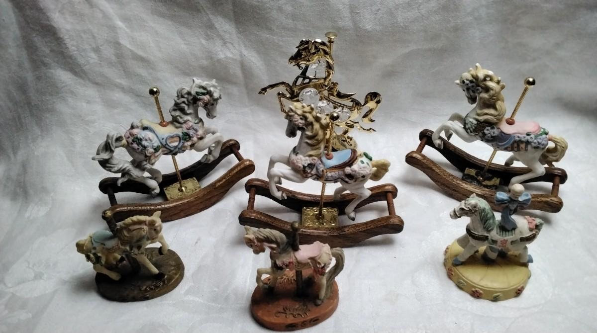 Set of 6 Porcelain and 1 Glass Carousel Horses