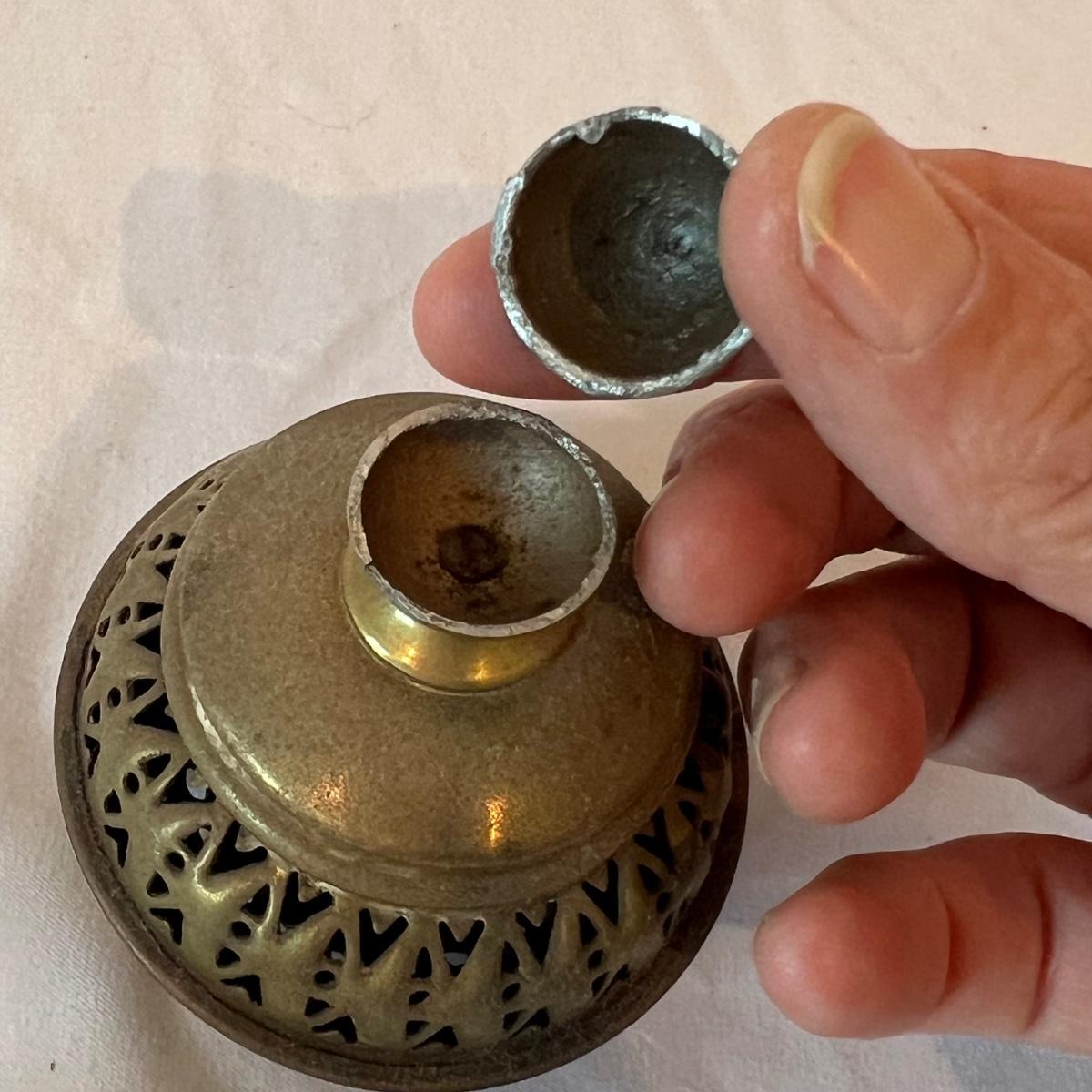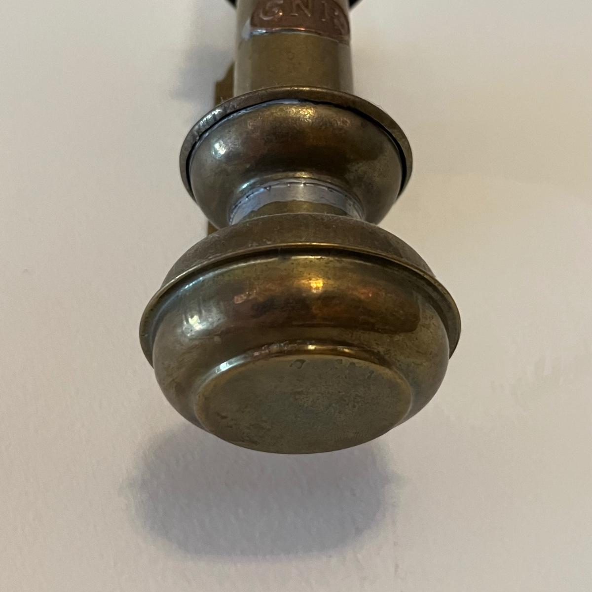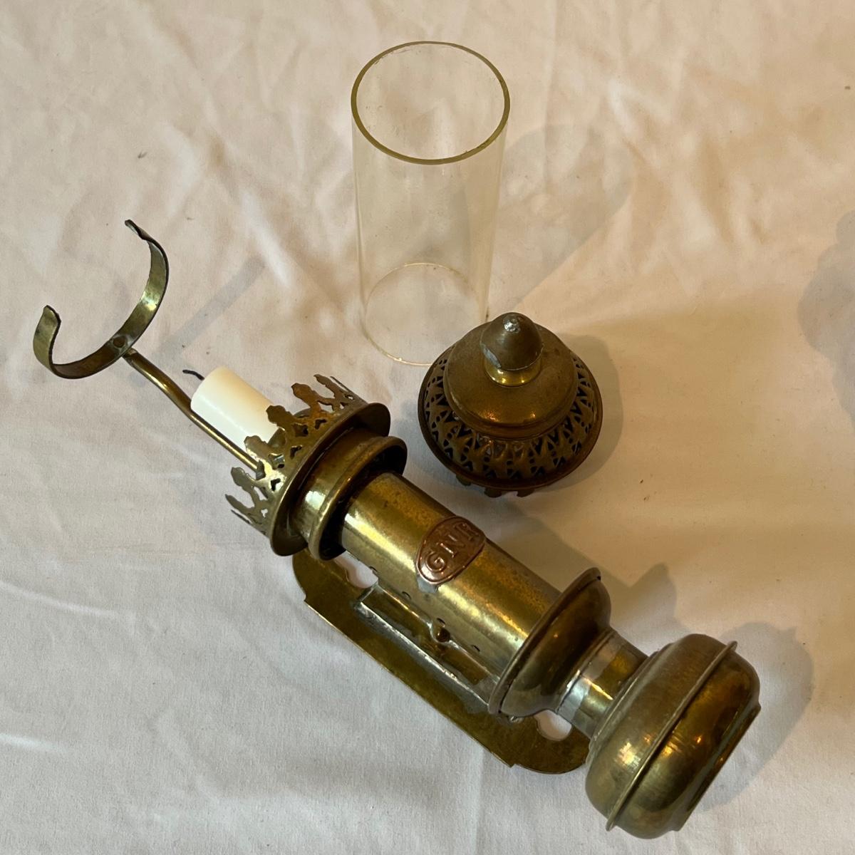 A matching pair of GNR brass sconces. Both house candles and were mounted on the wall, but have been taken down, along with included screws, ready for their new home. Note that the finial is unattached on one sconce, it can just rest in place or be glued back on.