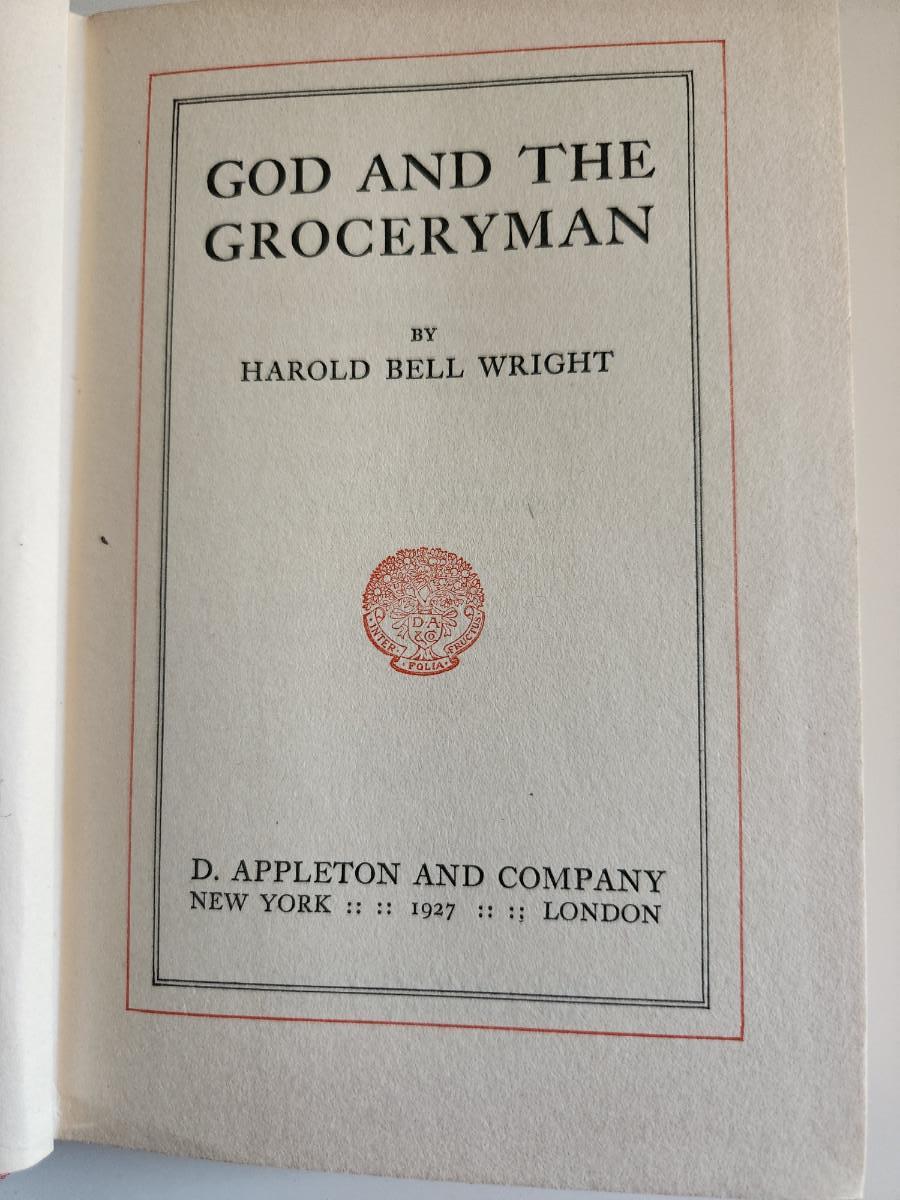 This auction lot is for a nice, vintage copy of the book God And The Groceryman by Harold Bell Wright. This book written by a Kentuckian is in good condition for its age. Hard bound with a good, clean linen-type cover, with minor scratch and no dust jacket. Published by Appleton in 1927. 260 Pages.