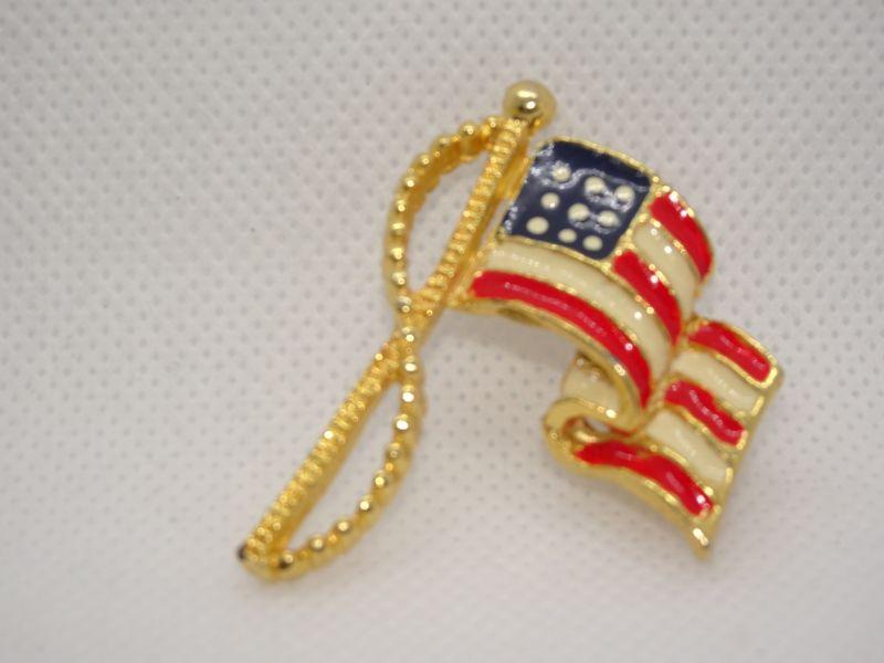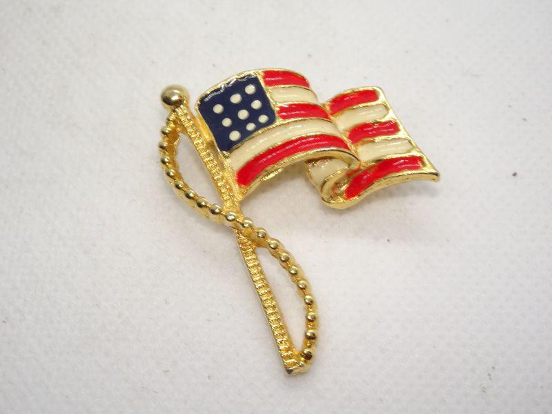 God Bless American Gold Tone Flying USA Flag Pin