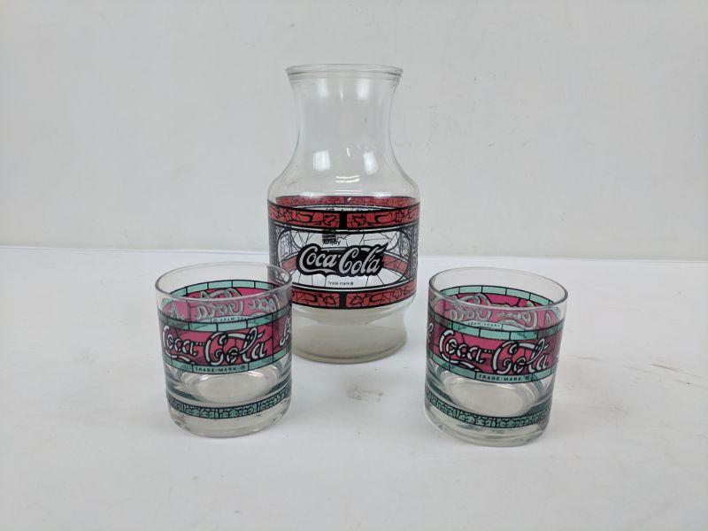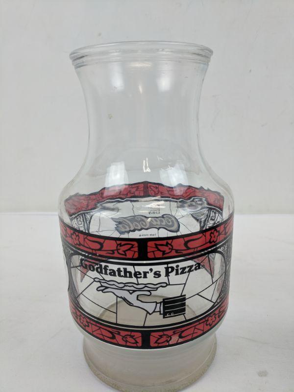 Godfather's Pizza Coca-Cola Glass Pitcher & 2 Glass Coca-Cola Cups