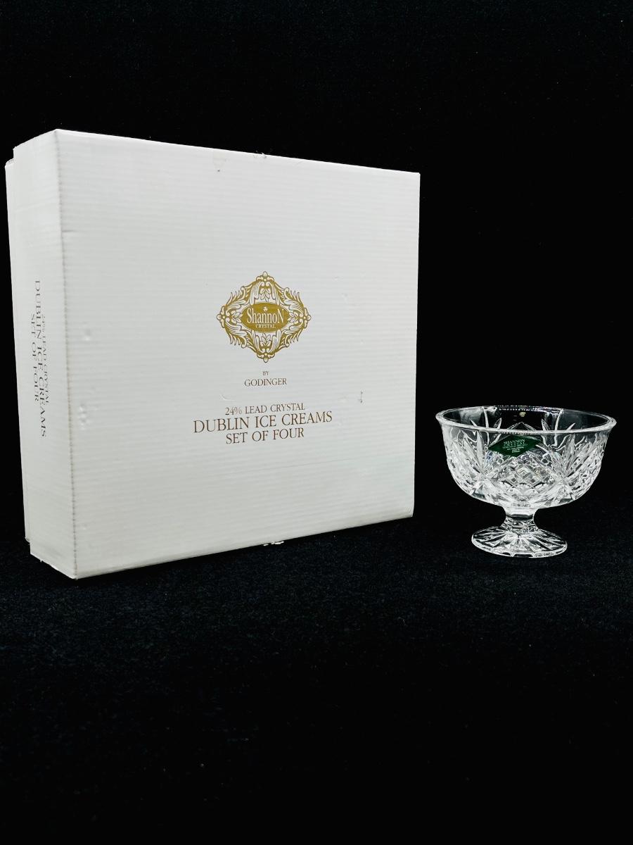 GODINGER ~ Dublin ~ Set Of Four (4) ~ Lead Crystal Ice Cream Glasses