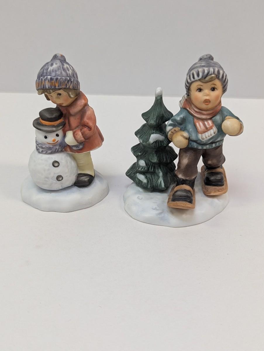 Goebel Berta Hummel Figurines "A Gift For Snowman" & "Dashing Through The Snow"