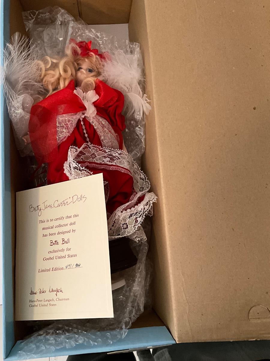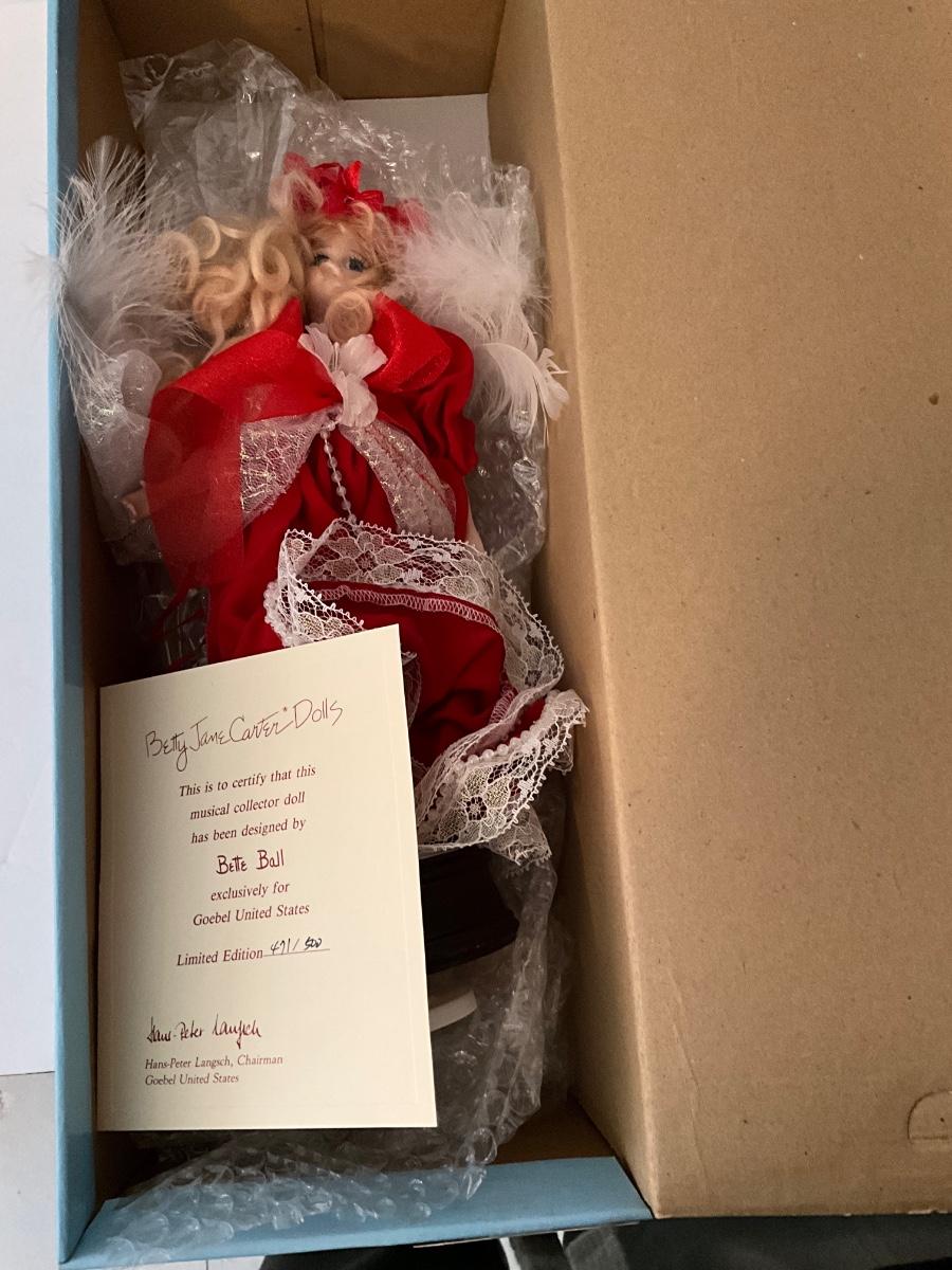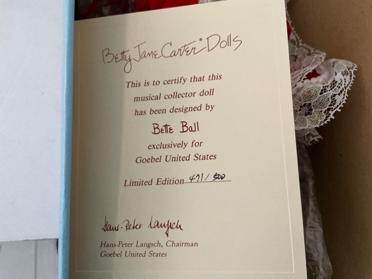 Goebel "Betty Jane" Carter Doll, Original Limited Edition Musical Porcelain Doll by Bette Ball, # 471/500 as pictured
