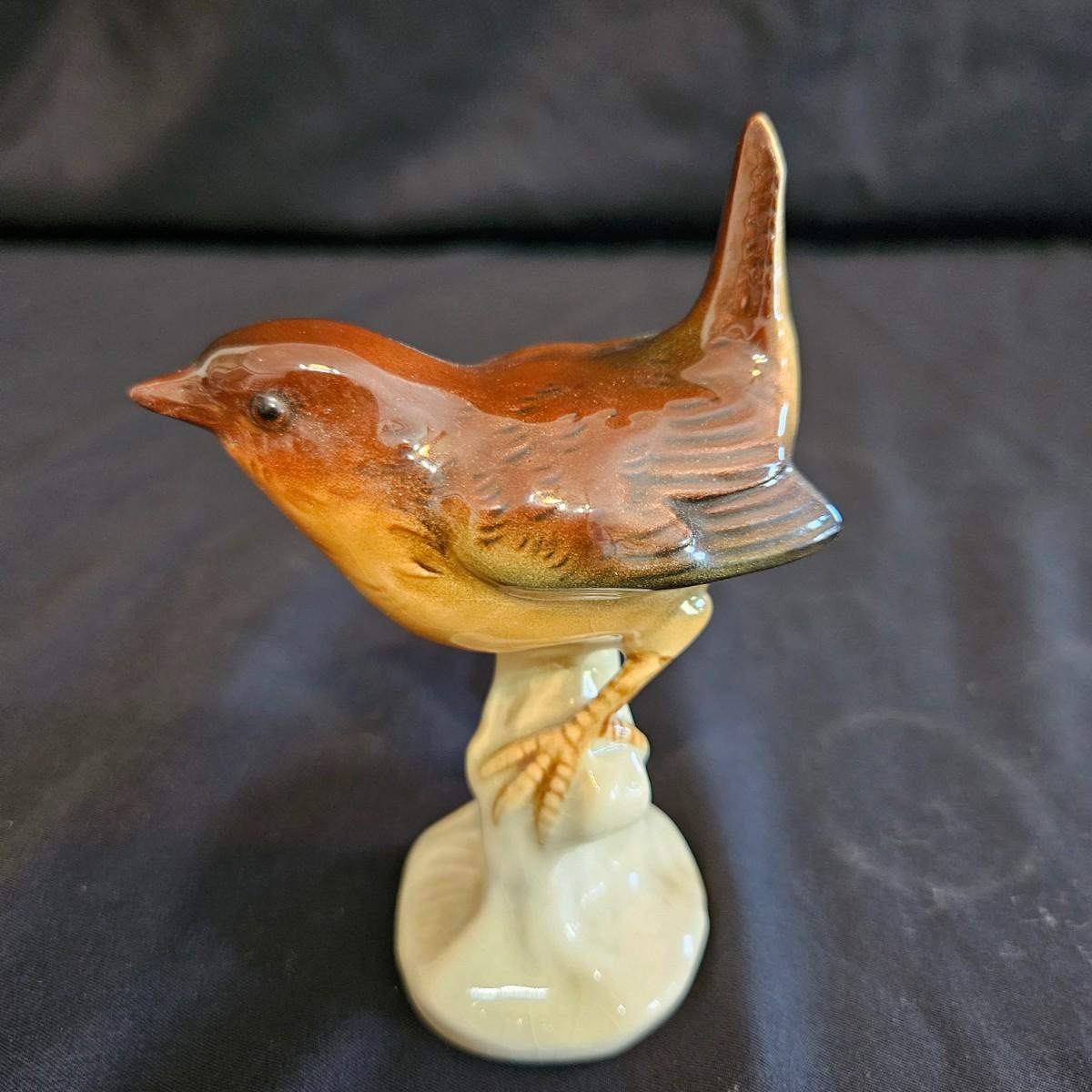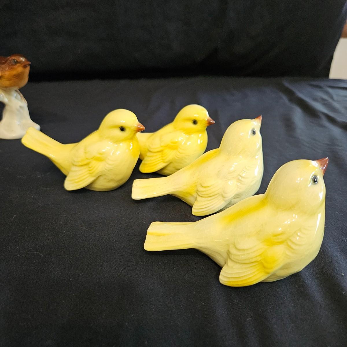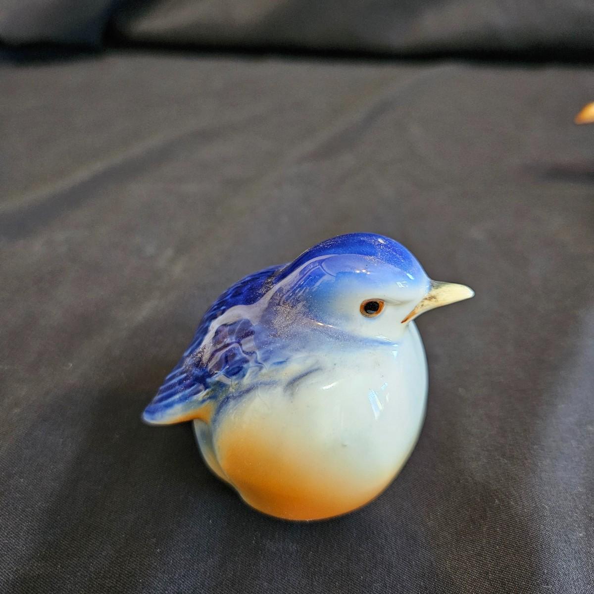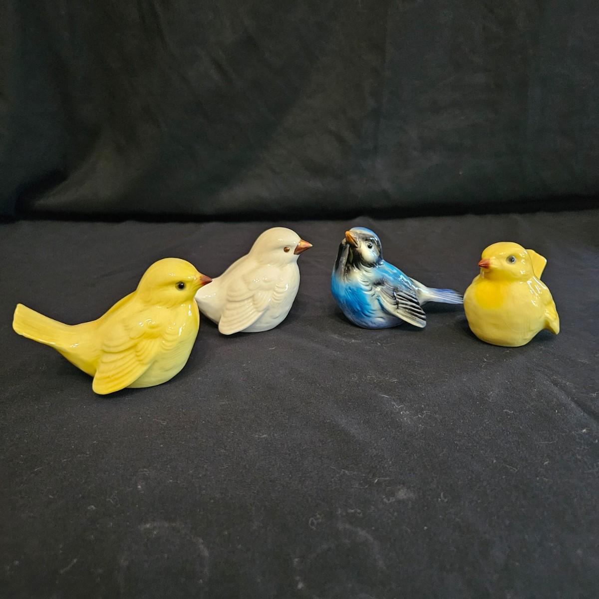 A collection of 13 ceramic birds, seven of which are manufactured by Goebel. The two smallest birds are marked Wade of England and the remainder are marked with country of origin or unmarked. The piece with two birds measures approximately 5" x 2.5" x 3.5"H. Shipping available