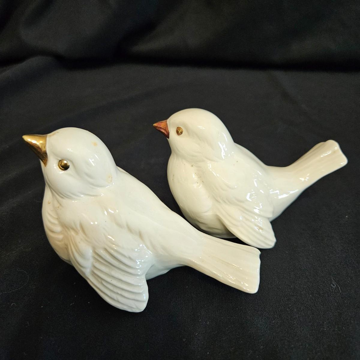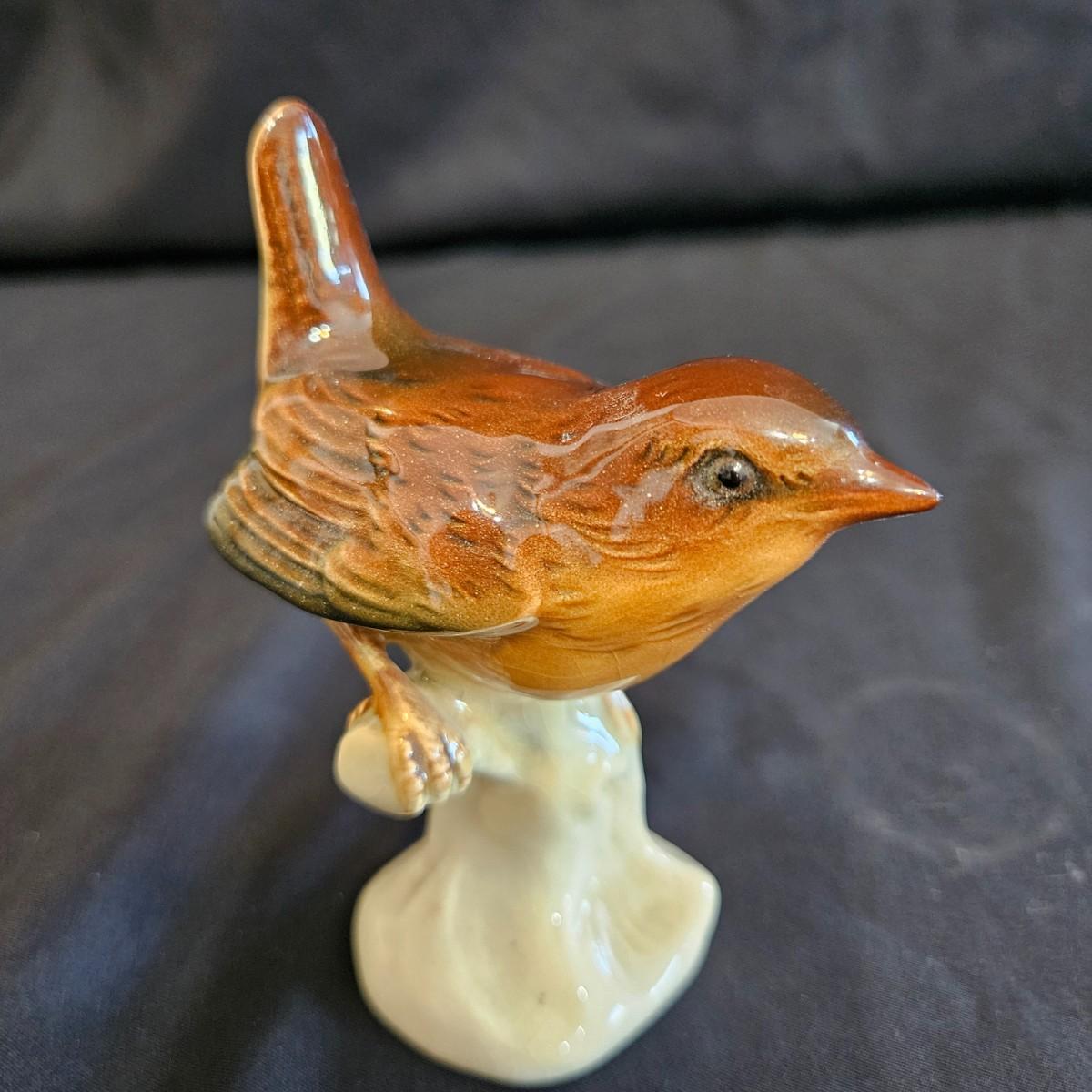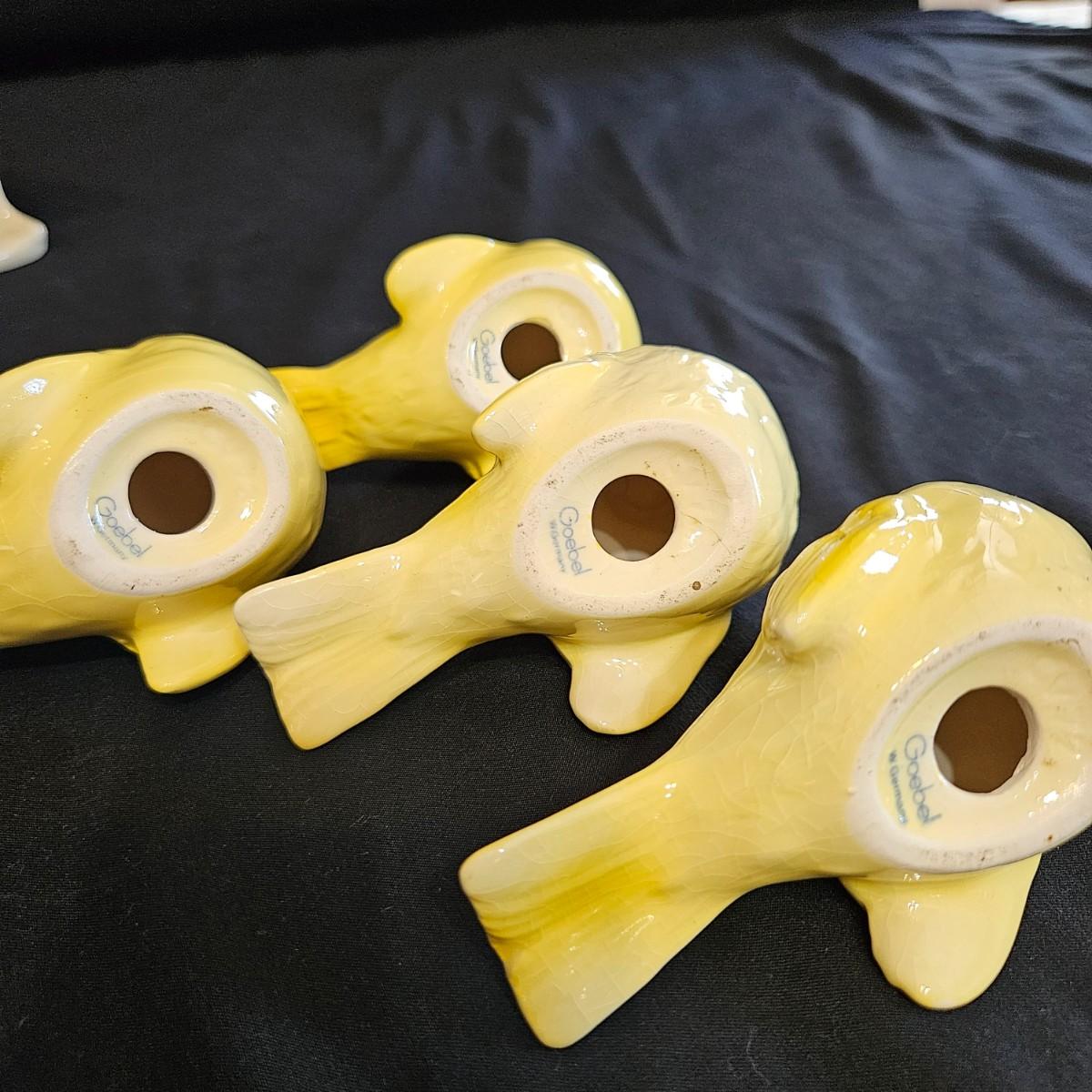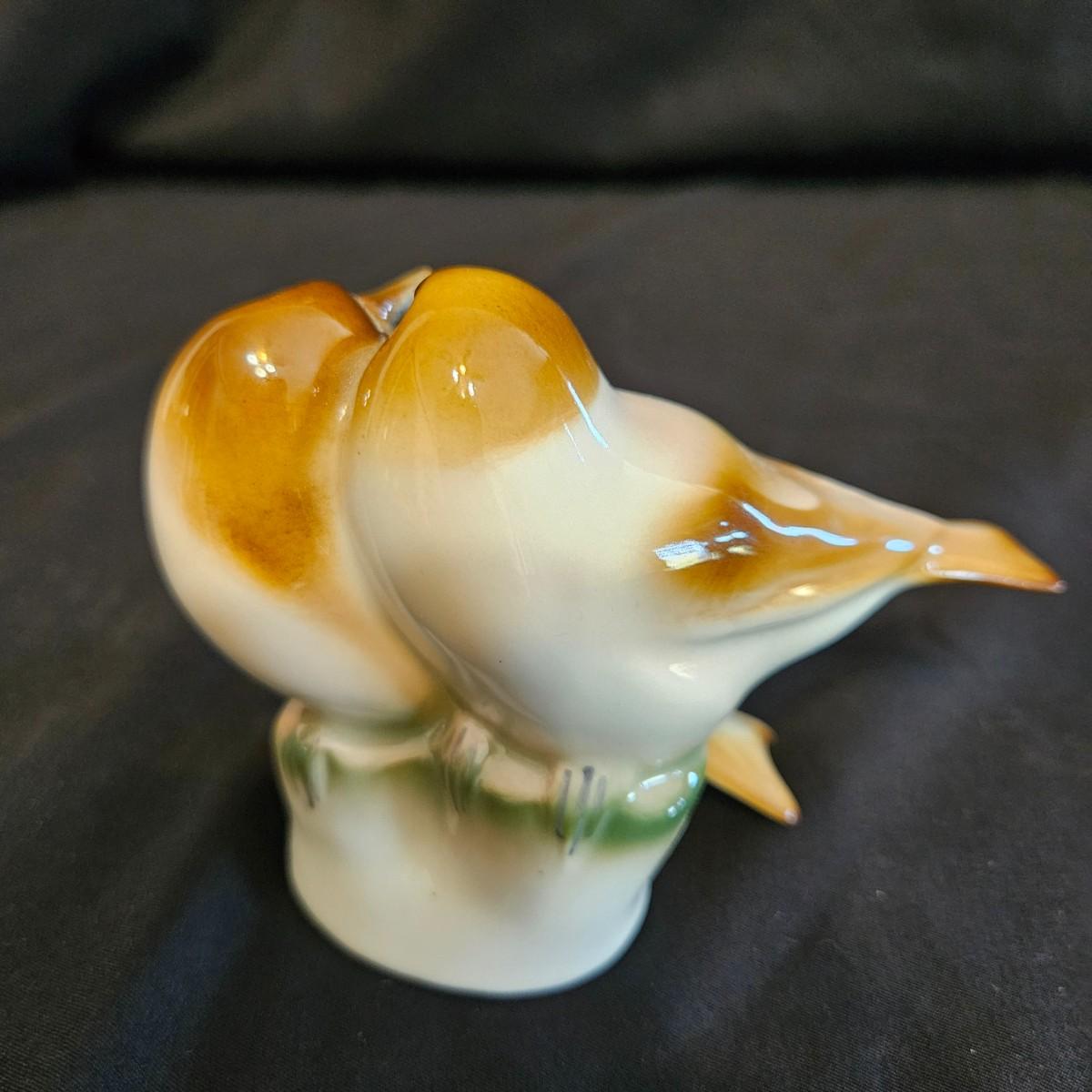 A collection of 13 ceramic birds, seven of which are manufactured by Goebel. The two smallest birds are marked Wade of England and the remainder are marked with country of origin or unmarked. The piece with two birds measures approximately 5" x 2.5" x 3.5"H. Shipping available