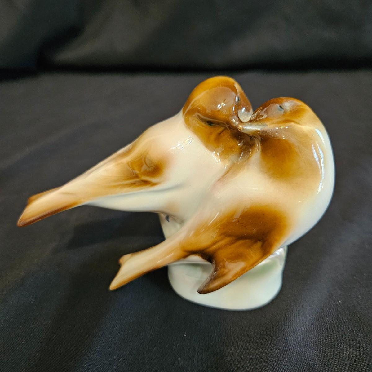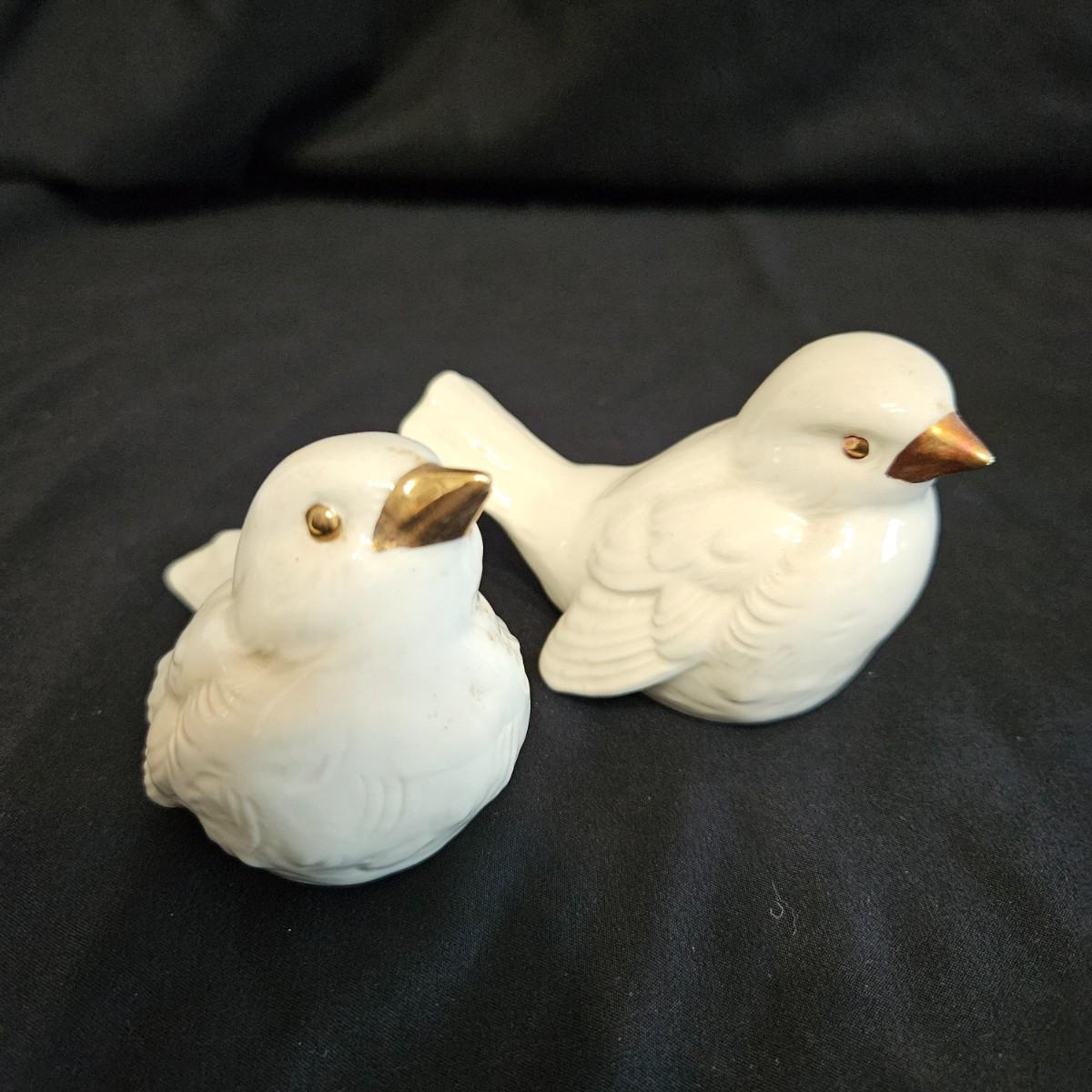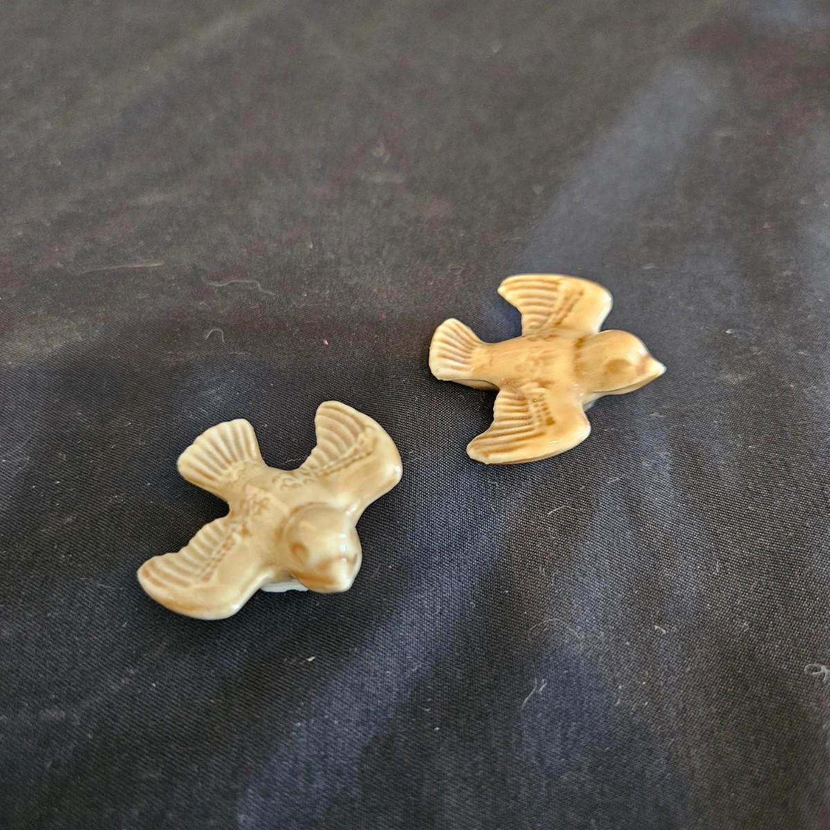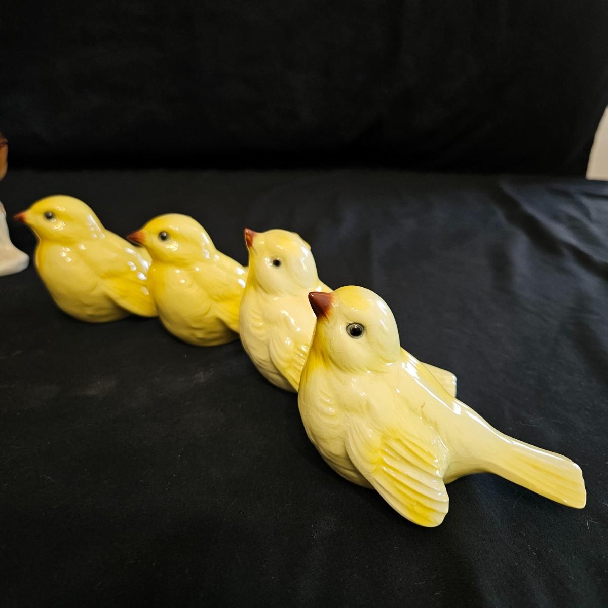 A collection of 13 ceramic birds, seven of which are manufactured by Goebel. The two smallest birds are marked Wade of England and the remainder are marked with country of origin or unmarked. The piece with two birds measures approximately 5" x 2.5" x 3.5"H. Shipping available