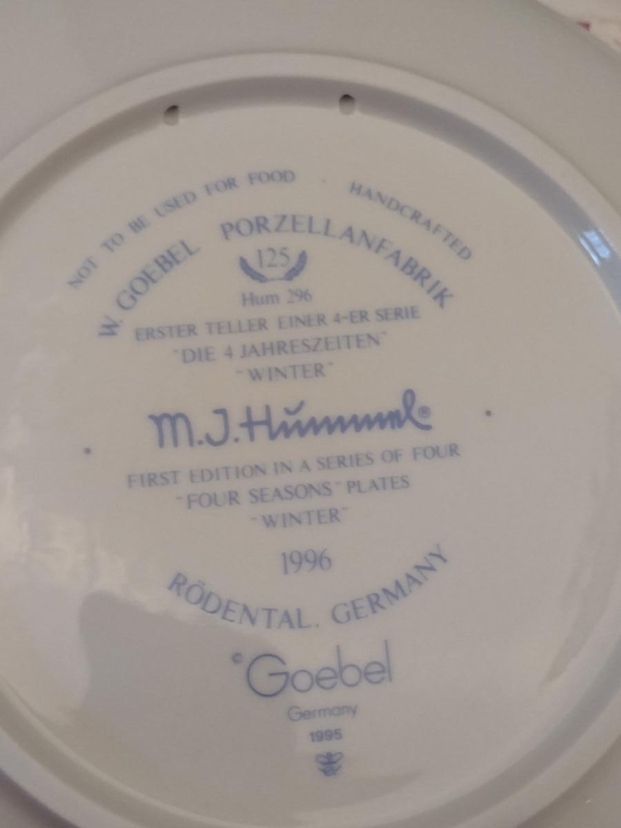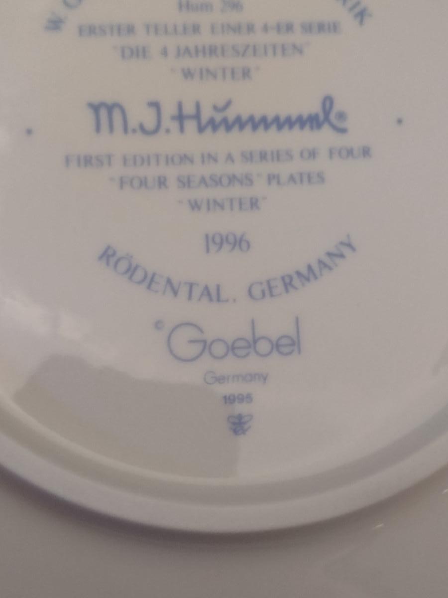 Goebel Hummel Collector's Plate- 'Four Seasons- Winter' (1996) with Box- Approx 7 1/2" in Diameter