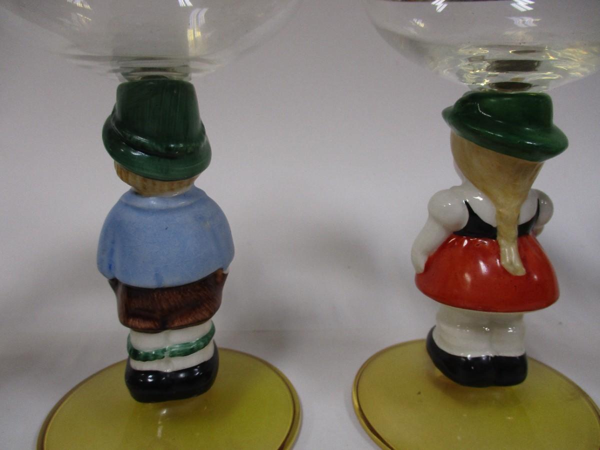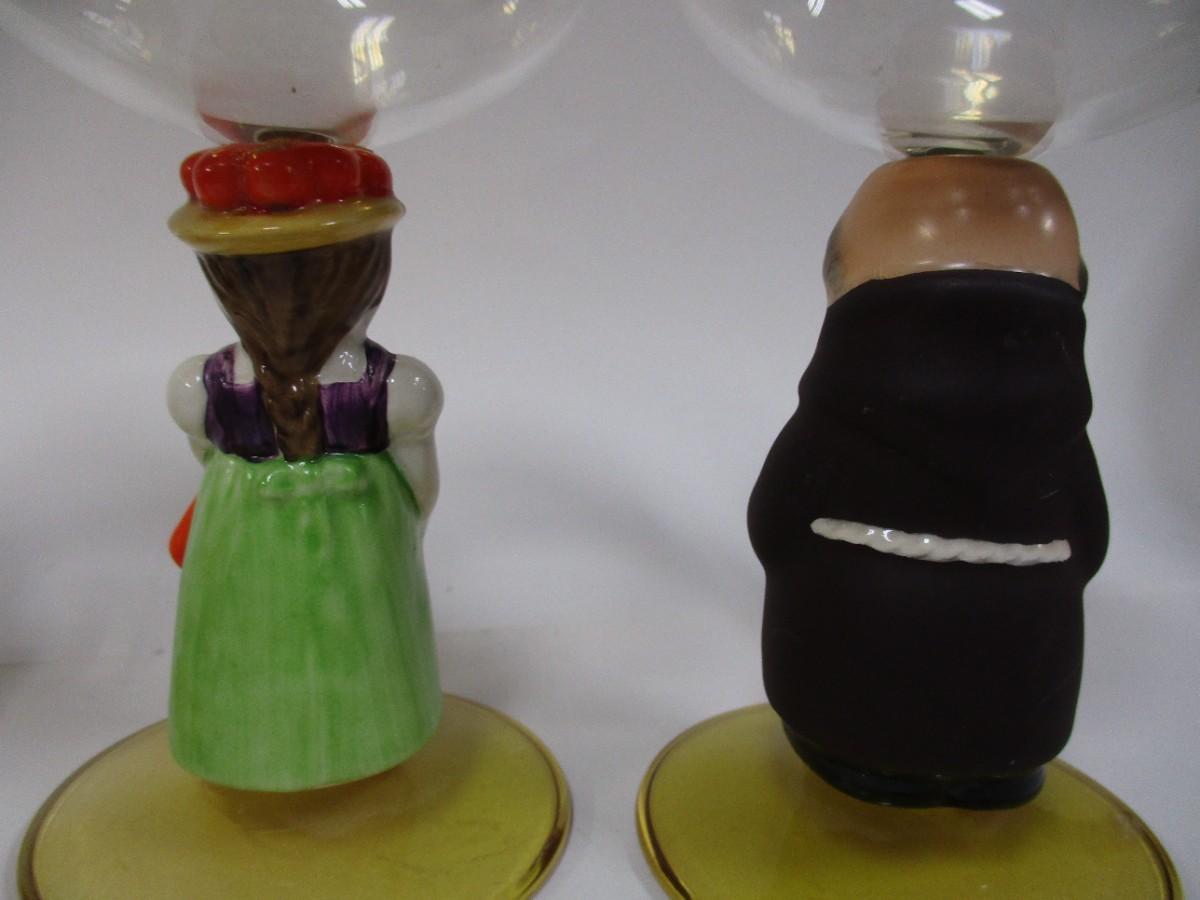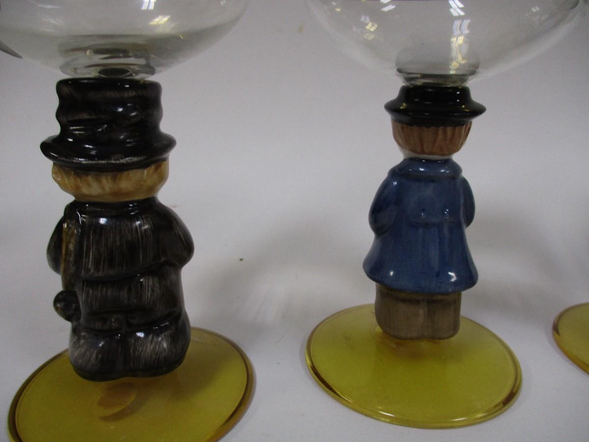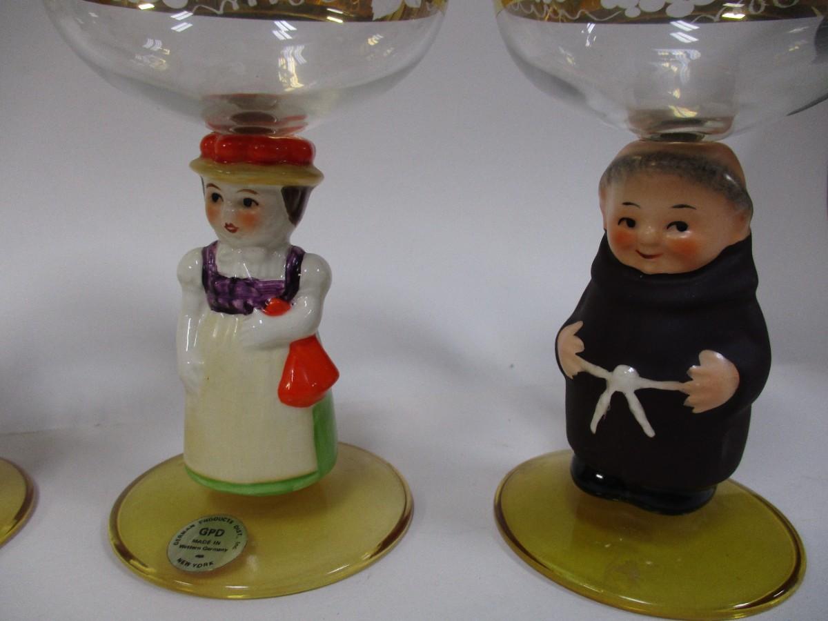 Goebel Hummel Figural Set of 6 Wine Stem Glasses 14K Gold Trim w/ Sticker Labels