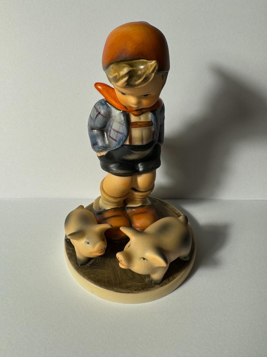 Goebel Hummel figurine depicting a boy with two pigs, also known as "Farm Boy" (Hummel #66).