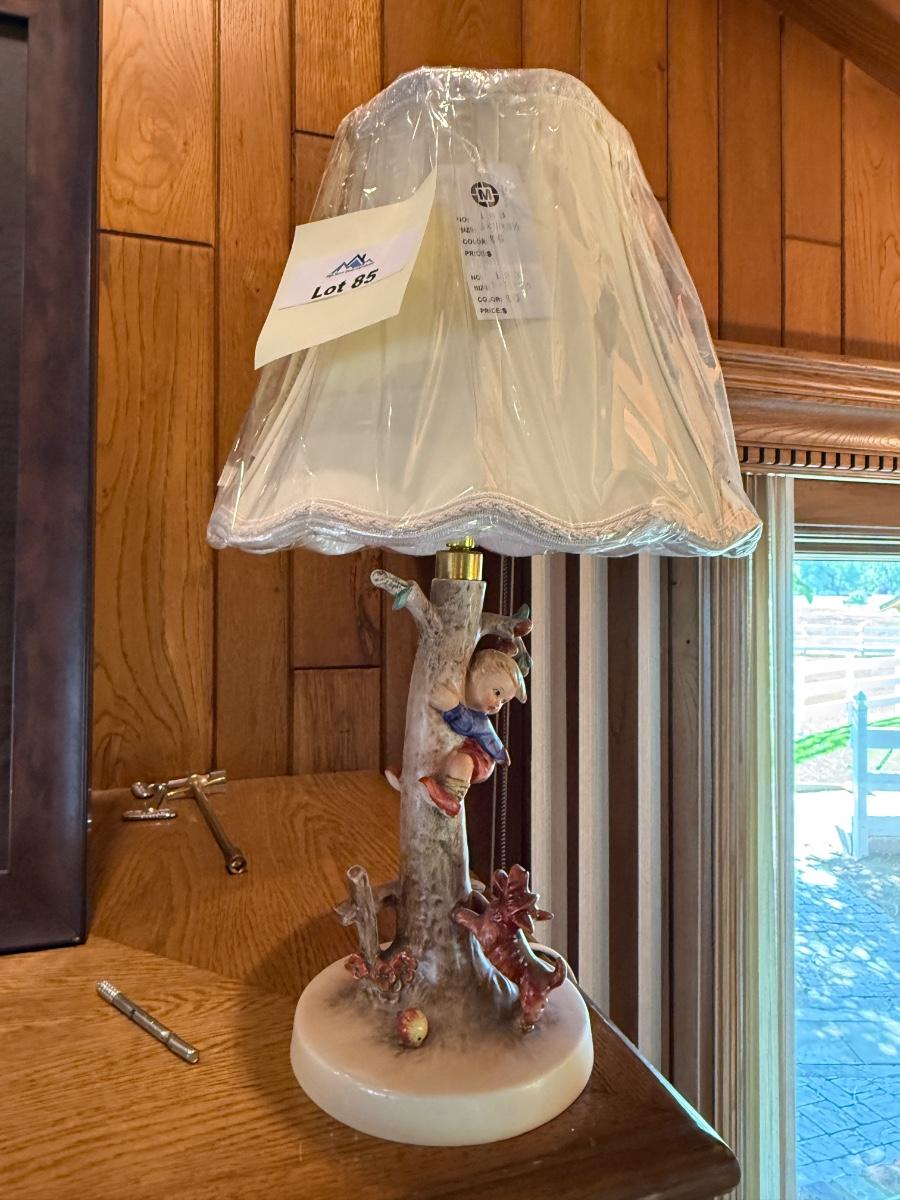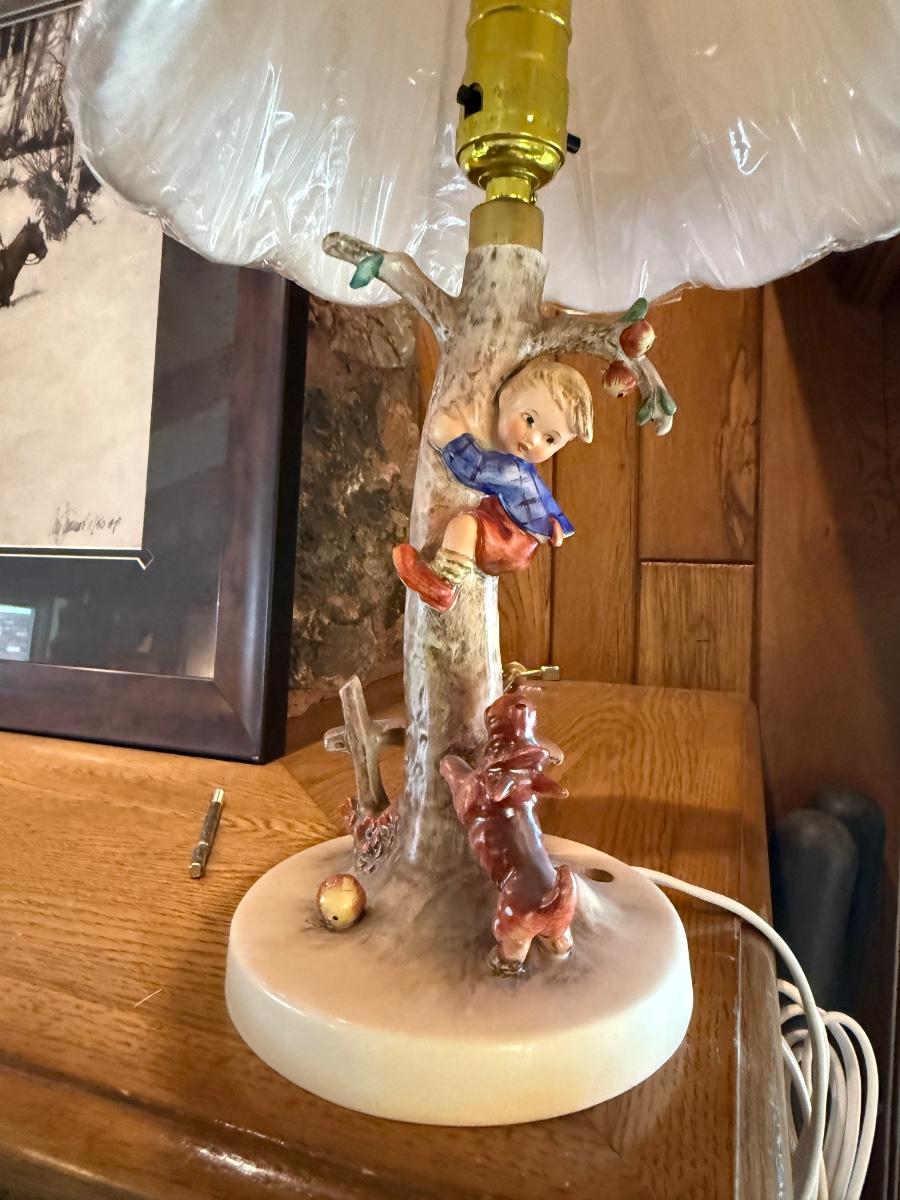 Hummel Table Lamp with boy up in tree with dog at base as shown in New Condition with shade still wrapped and original tag