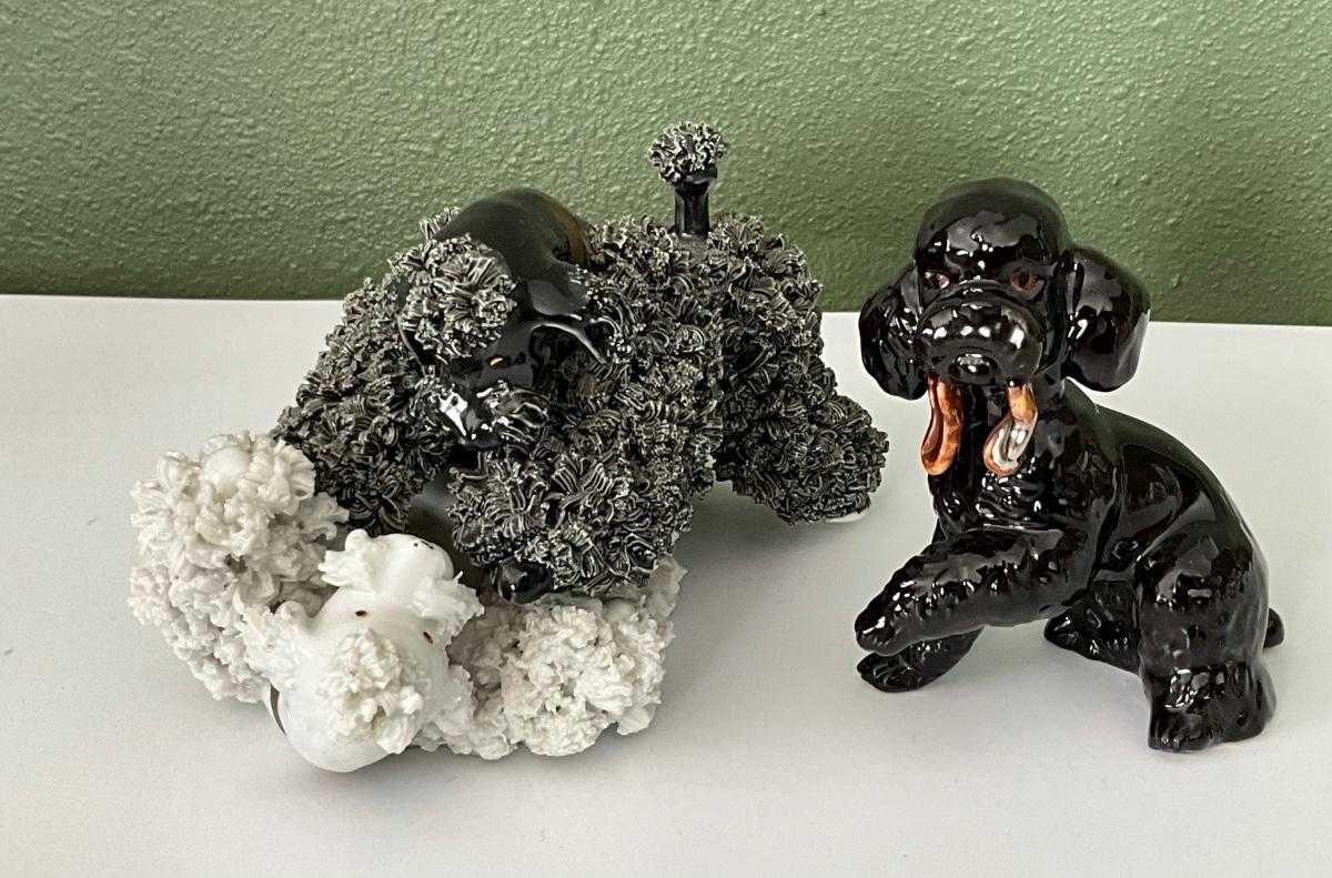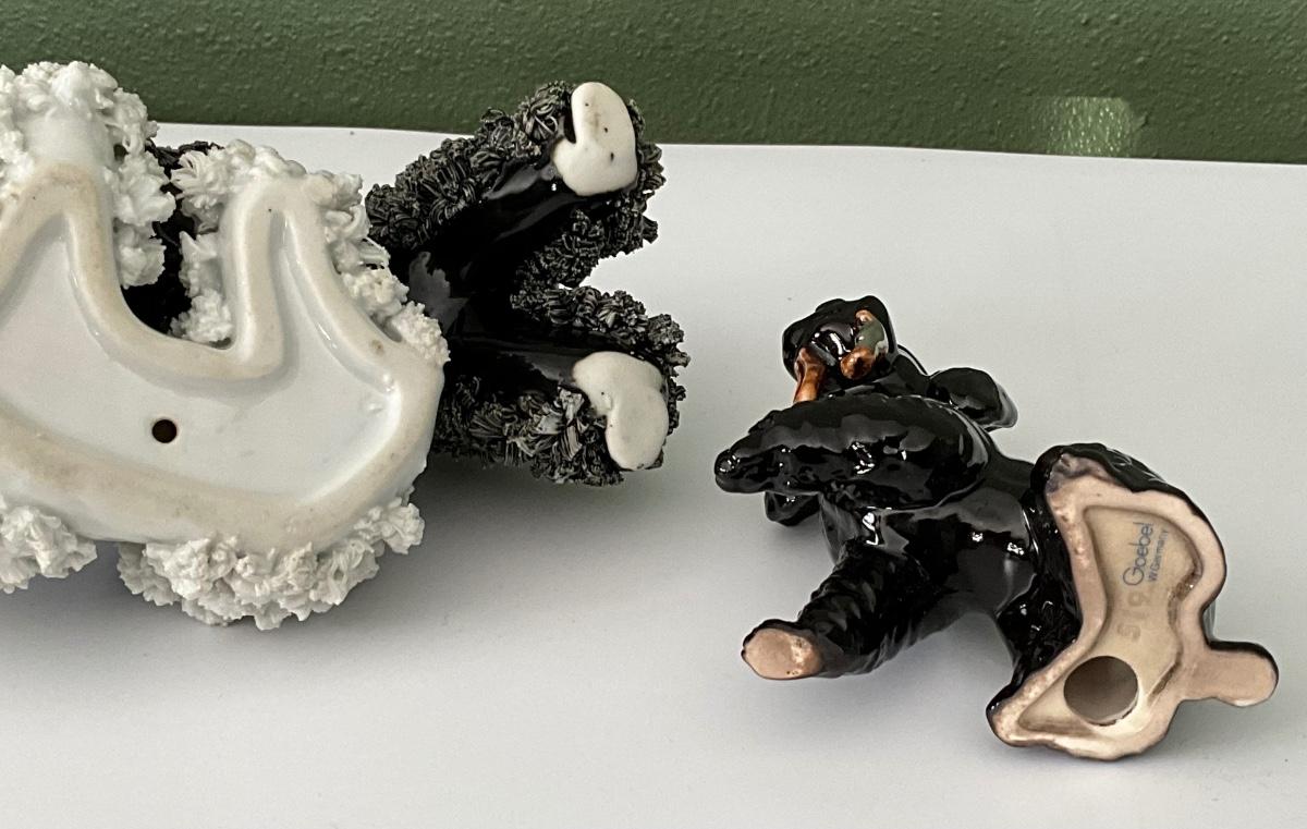 Goebel WGermany Poodle, and wrestling black and white spaghetti poodles