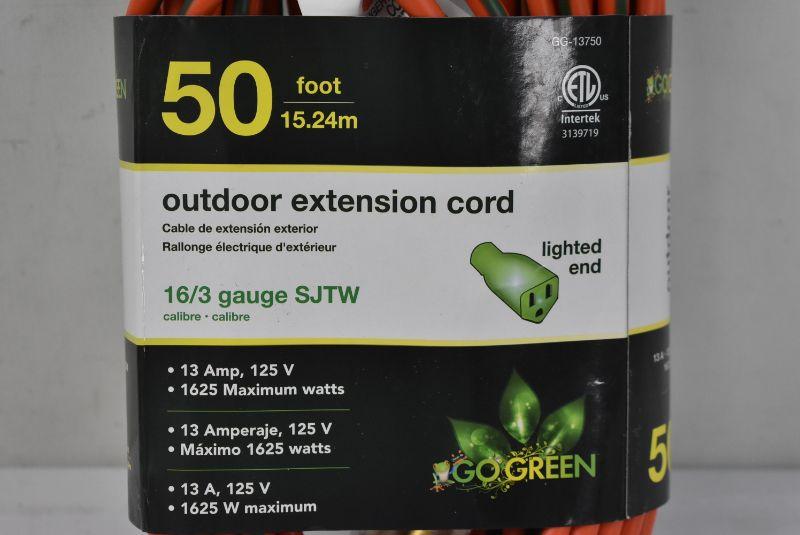 GoGreen Power 16/3 50' Heavy Duty Extension Cord, Lighted End, $17 Retail - New