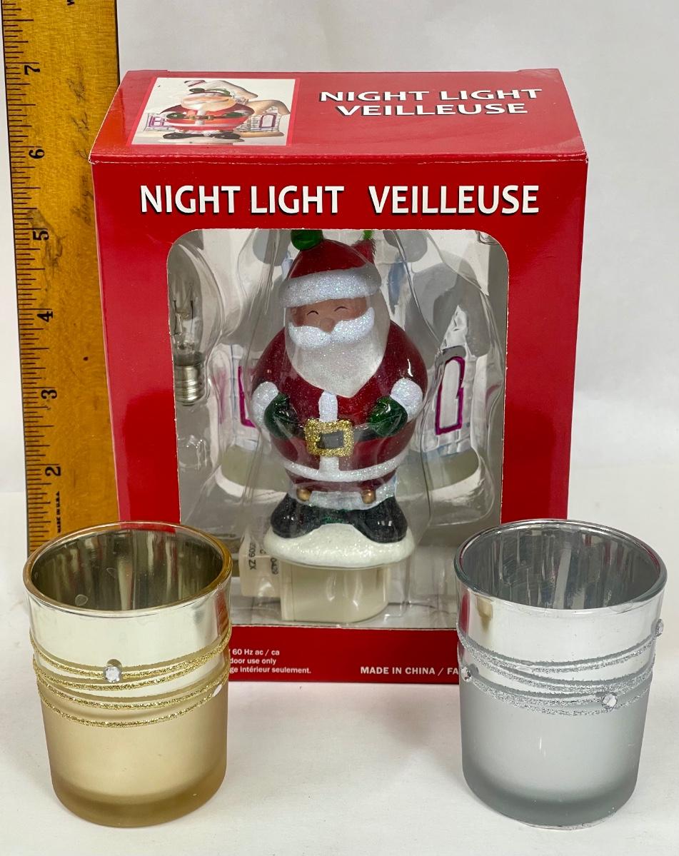 Christmas Misc Lot - two-sided nightlight and 2 votive candle holders