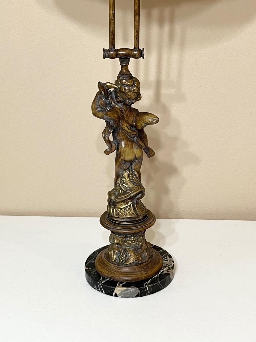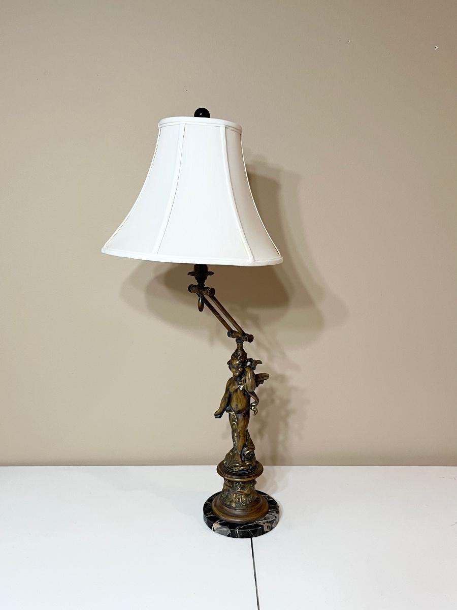 Antiqued Gold Cherub ~ 3-Way Adjustable Lamp With Marble Base
