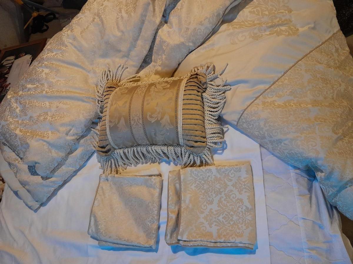 GOLD ACCENT COMFORTER WITH THROW PILLOWS FULL / QUEEN SIZED