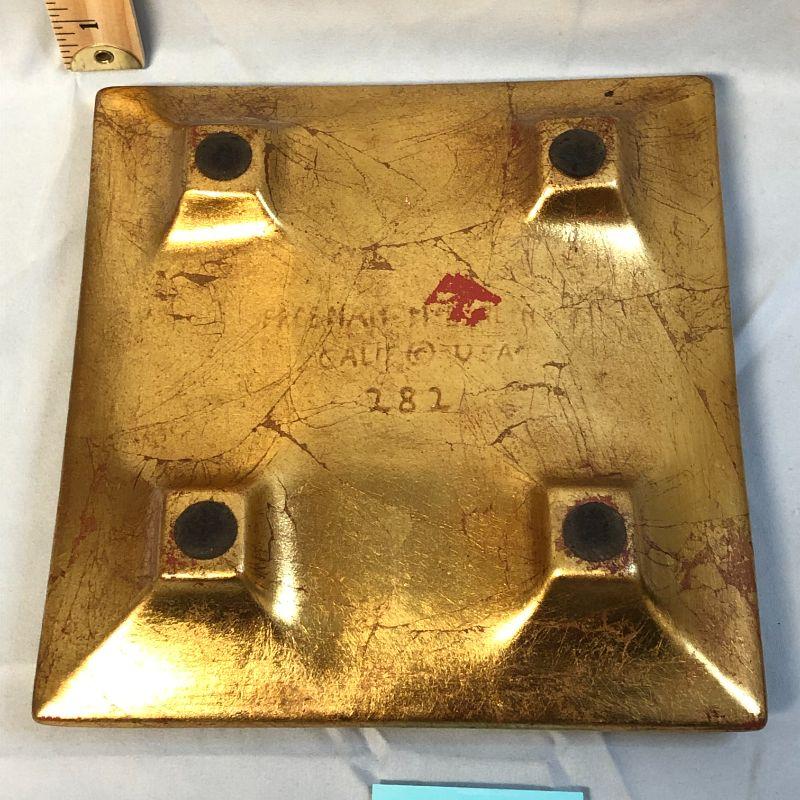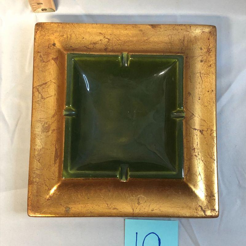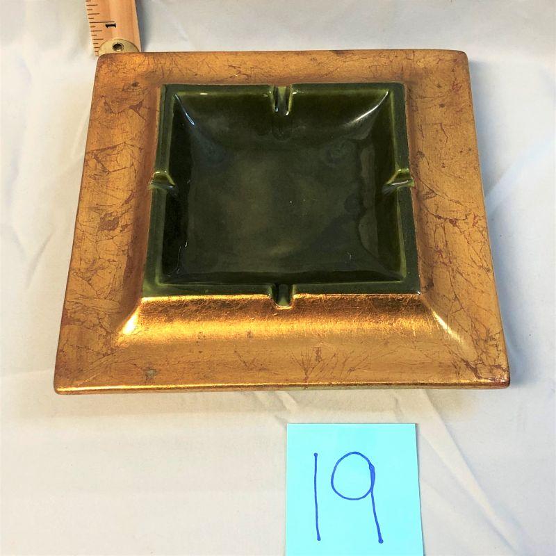 This ashtray is in excellent condition - just a little bit of gold loss on the underside. It is about 8.75" square.