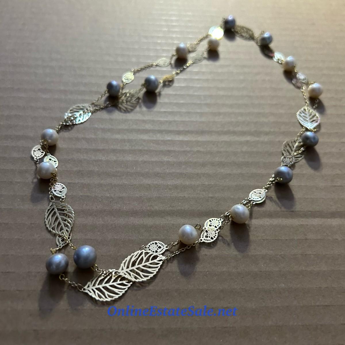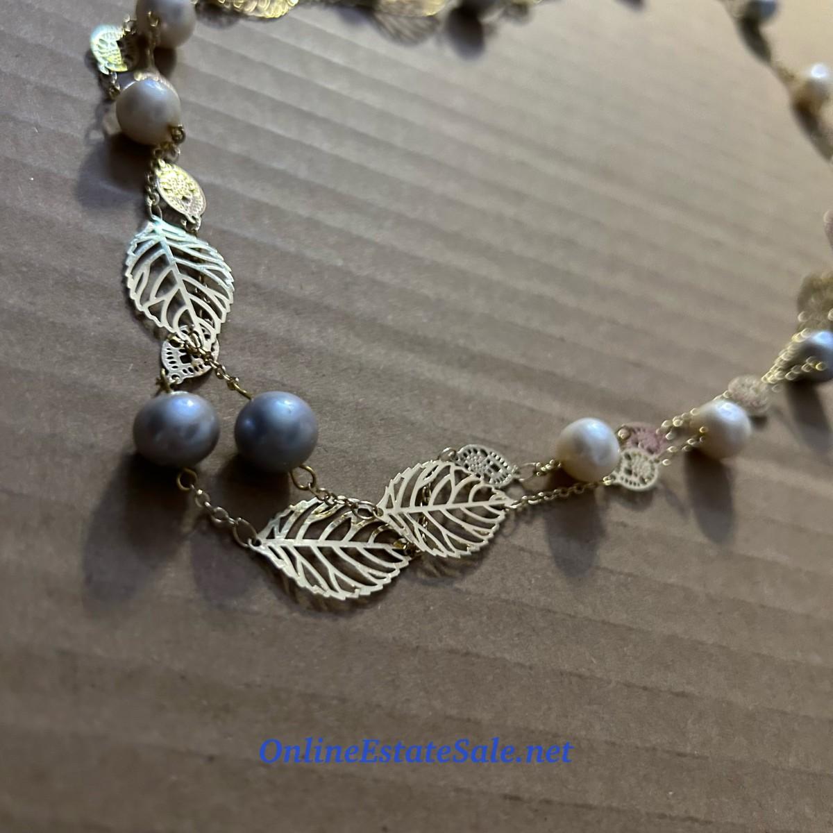24in Gold Colored Leaf Infiniti Chain with Multicolored Pearl Beads