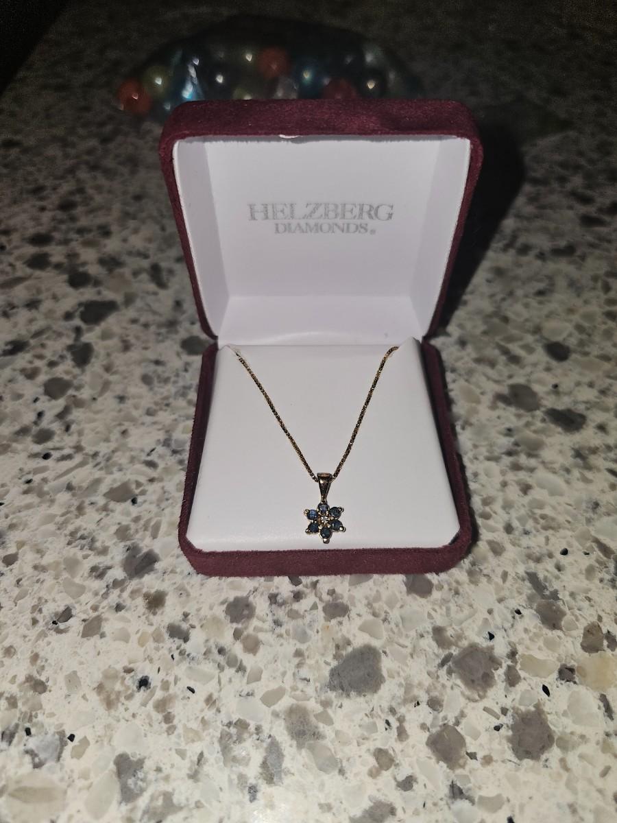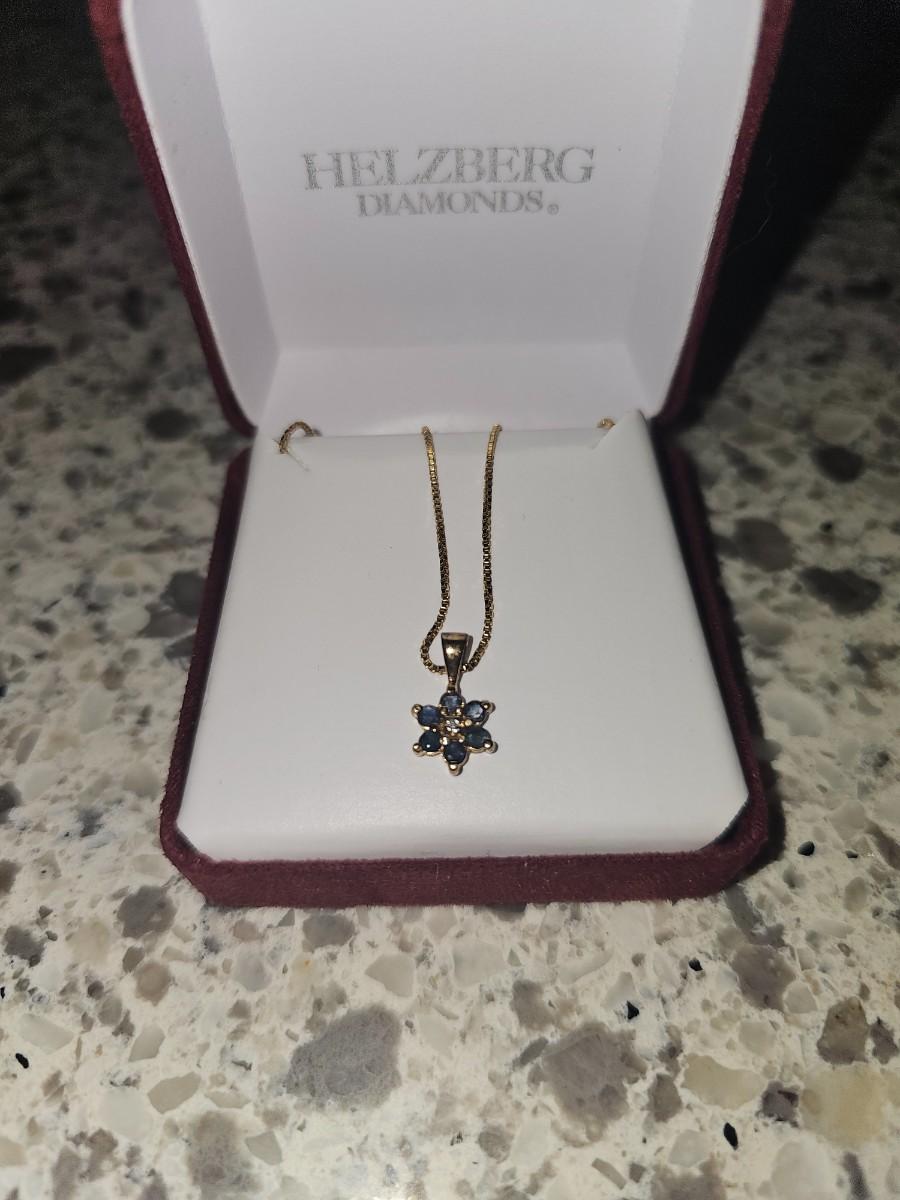 Gold and Silver Blue Saphire Pendant Necklace Appears to be 14kt Beautiful Piece