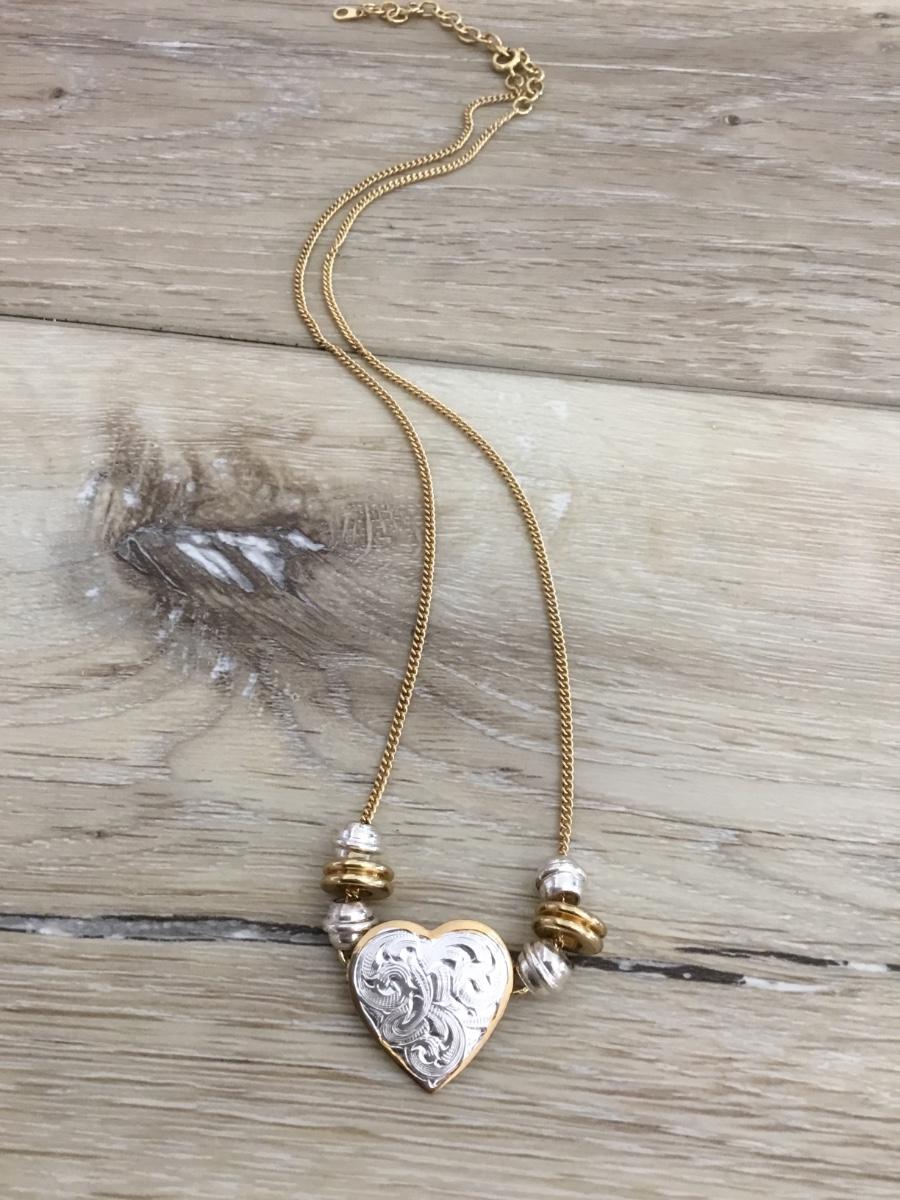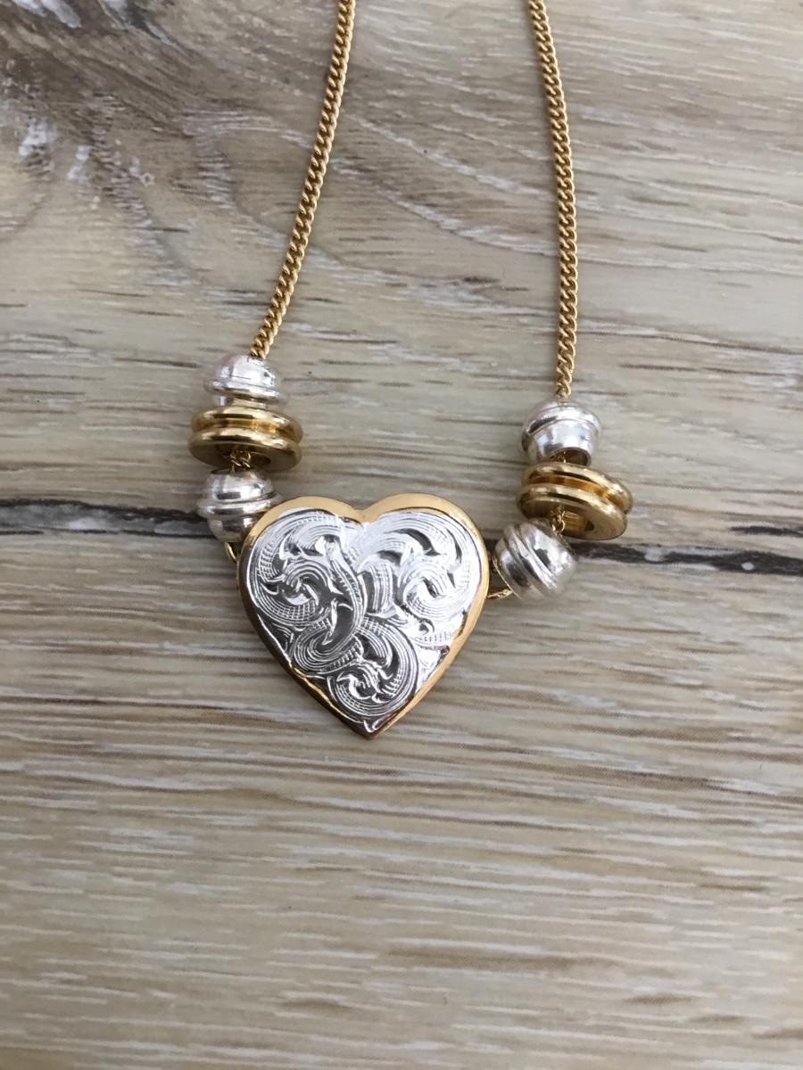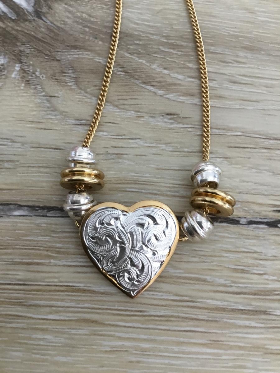 Gold and silver tone heart necklace