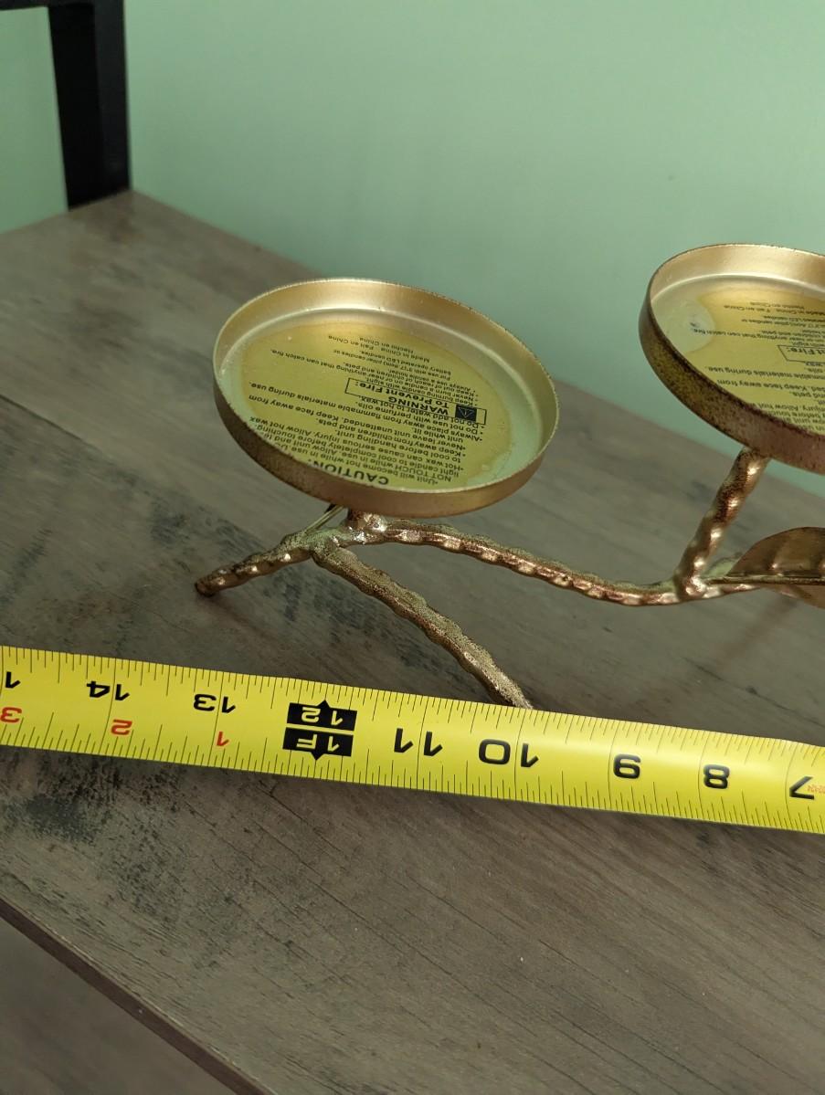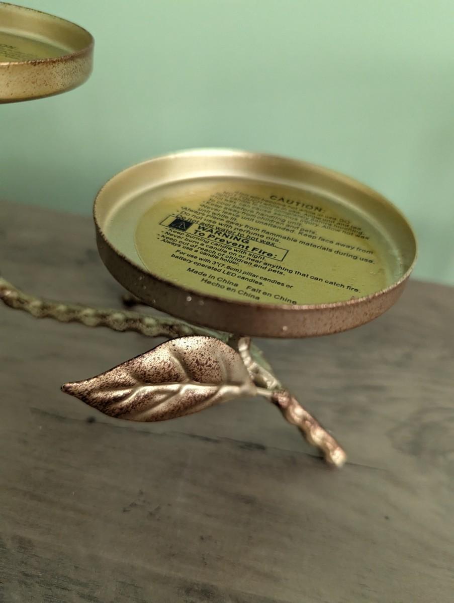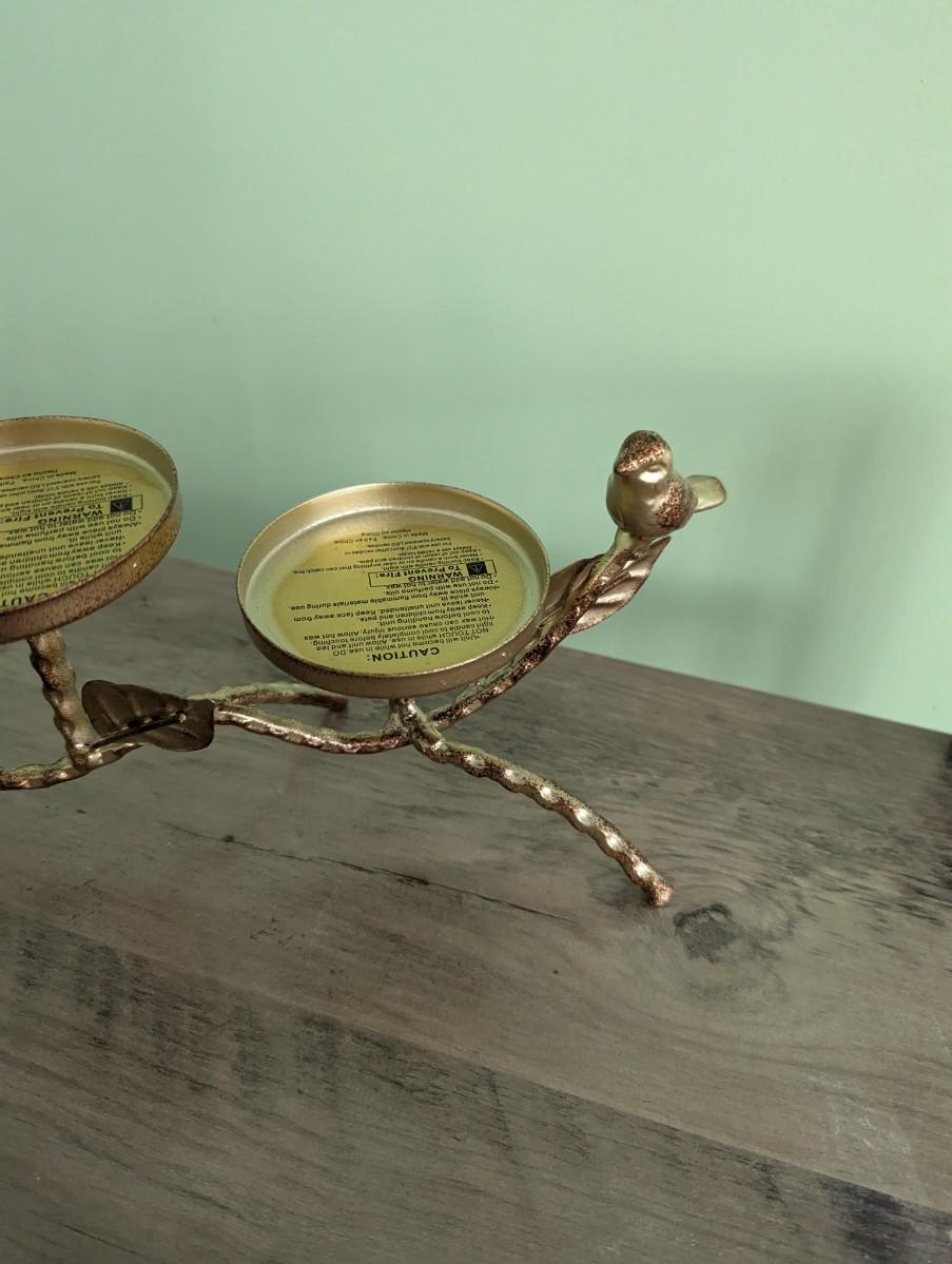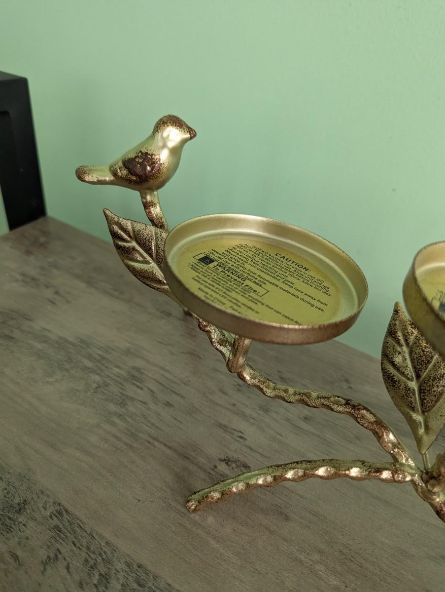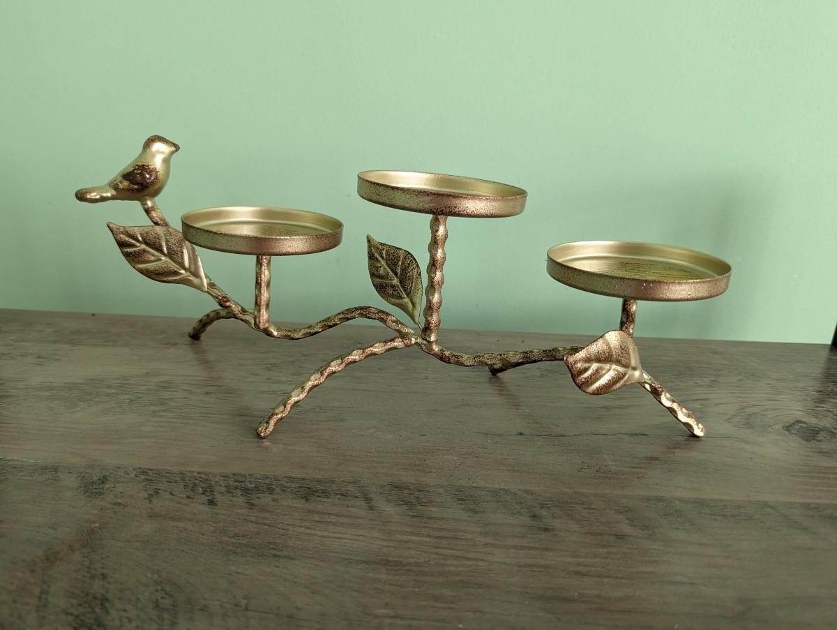 Gold & Antique Bronze Finish Metal Twig Leaf & Bird 3 Pillar Candelabra (FR)