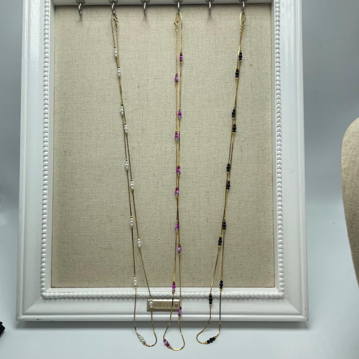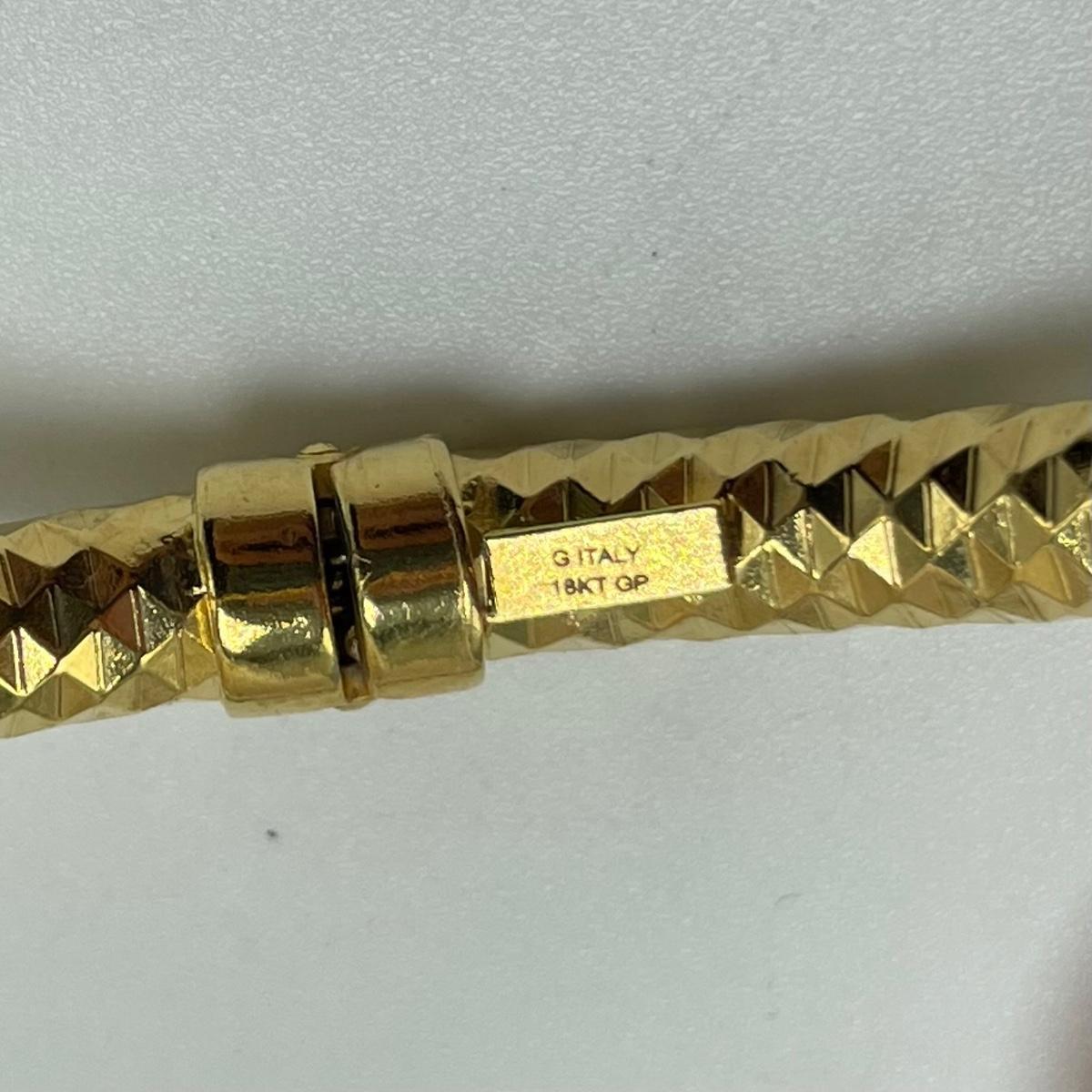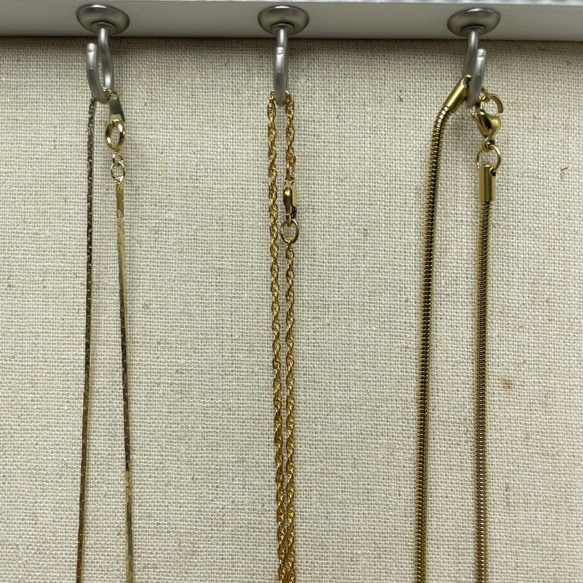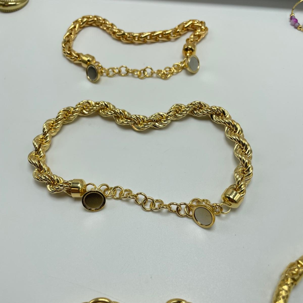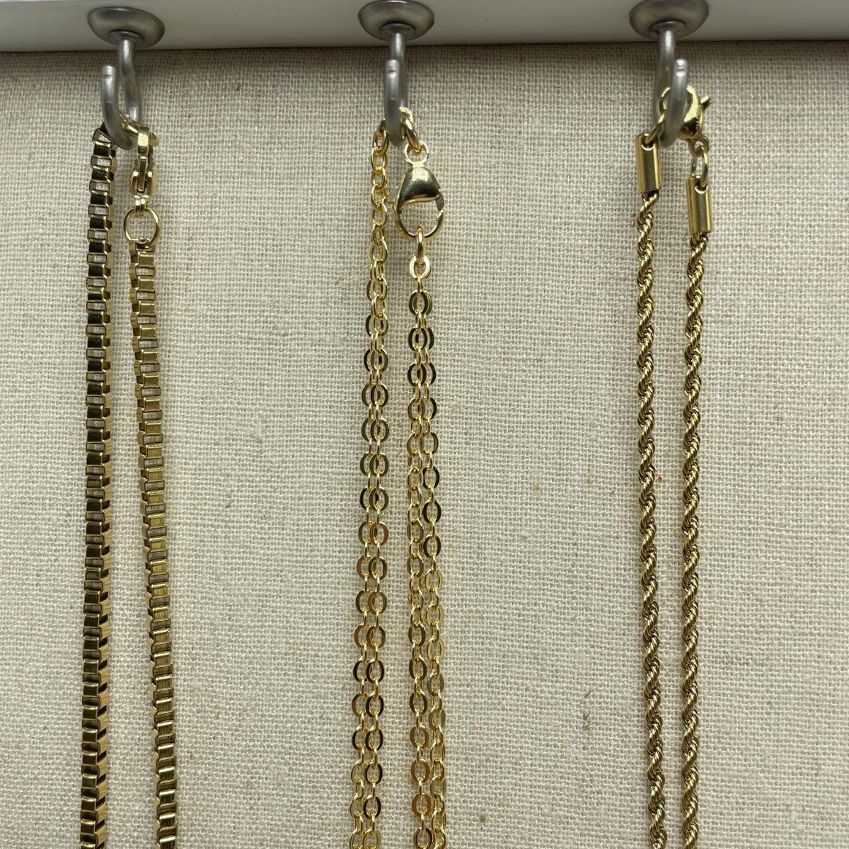 Large selection of gold and brass colored necklaces, rings and bracelets. Known stamps are shown in photos. Lot includes at least ten each of bracelets, necklaces and rings. Please see photos for all markings found. We cannot guarantee the authenticity of the gemstones. All sales are final. No returns or refunds. Please bid accordingly.