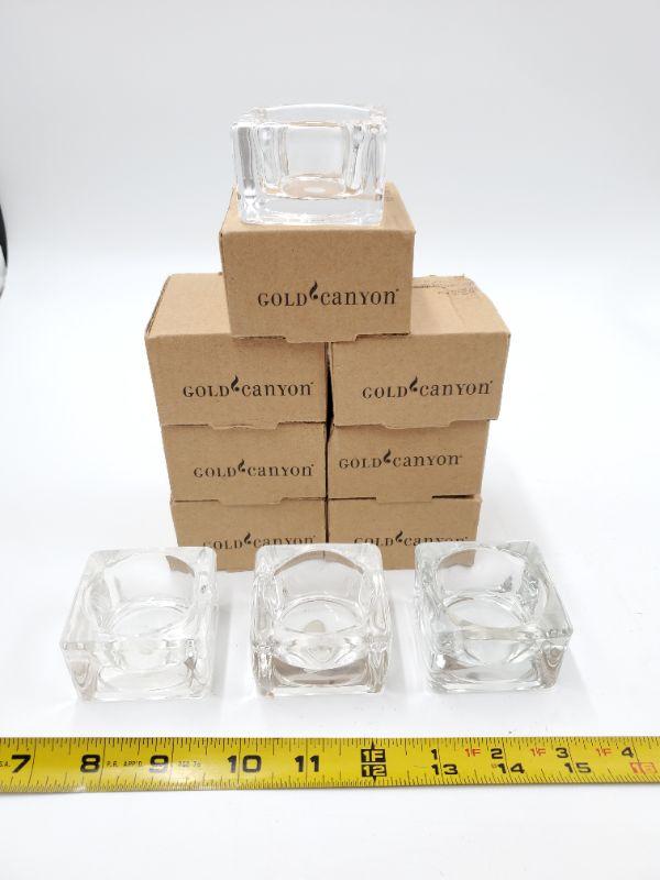 10 Gold Canyon square glass votive holders, 7 new in box. (1 was removed for photos)