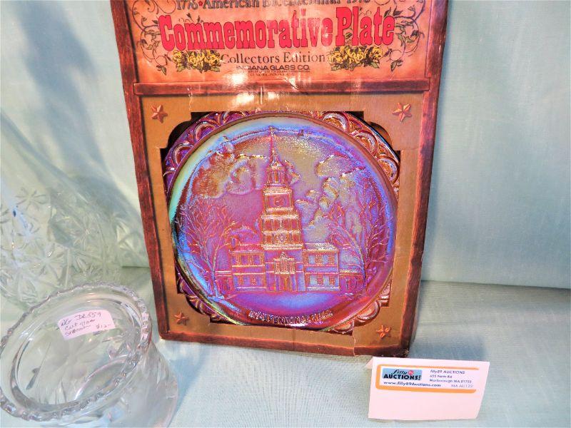 Gold Carnival Independence Hall Glass Plate, Decanter w/stop, Cut Glass Scallop