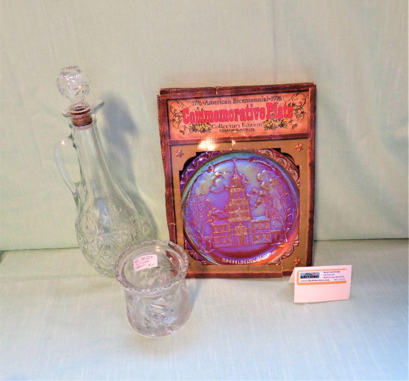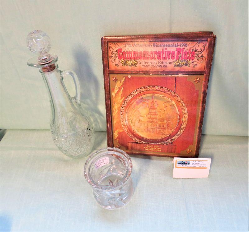8" diameter plate, 12" Decanter with Stopper, 4" H Lot of 3 - (6 lbs shipping)
