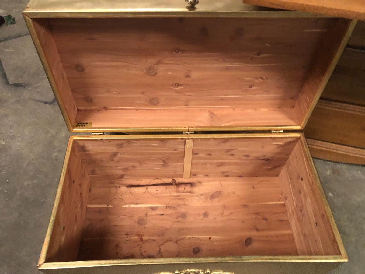 This is a nice cedar chest. Could be painted another color. Some wear on top. Measures 31 x 15 x 16