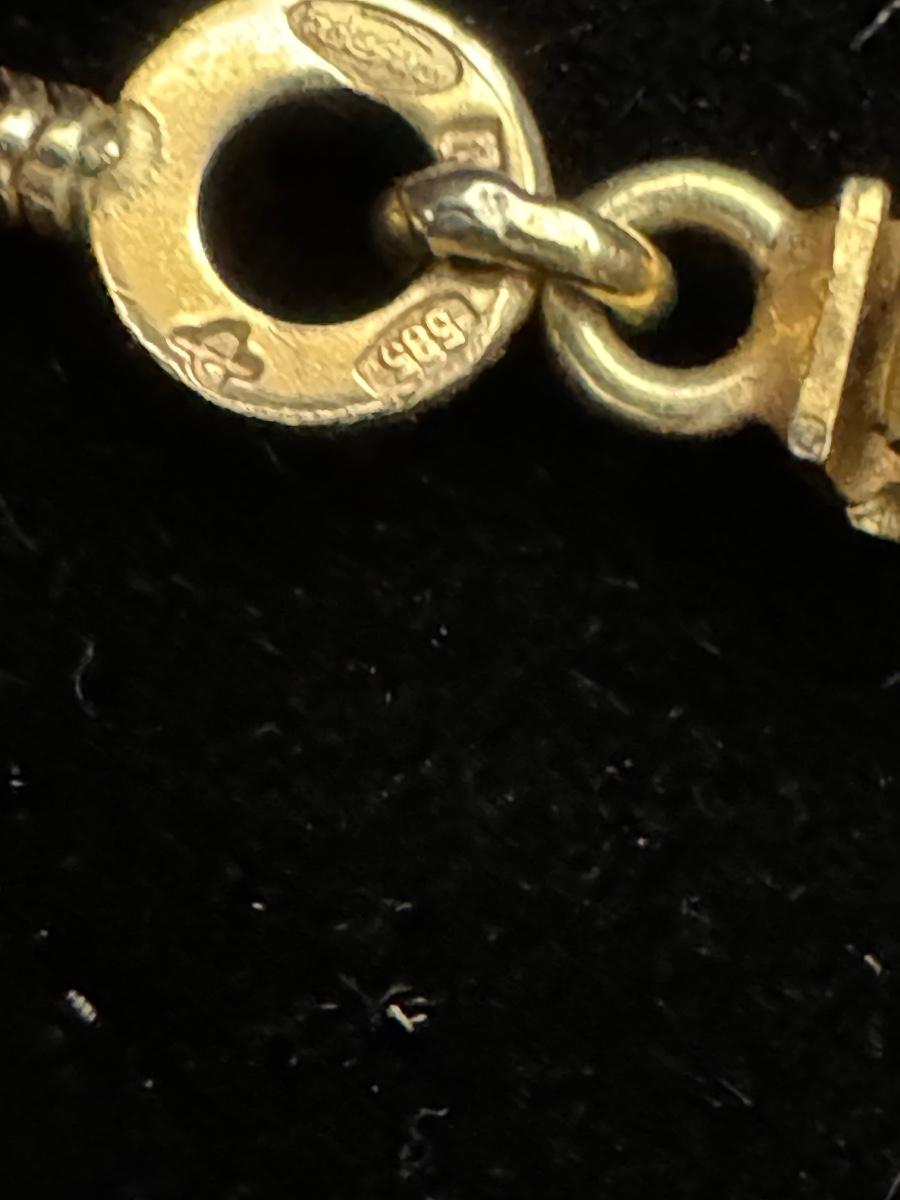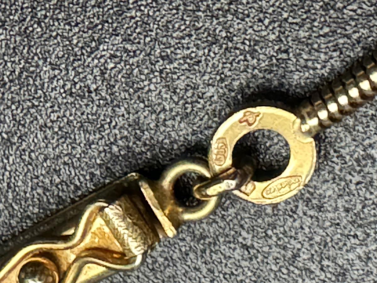 Buying as is, as found in this wonderful estate. See MANY PHOTOS for Content, Condition & Dimensions. NEVER a Buyer's Premium or Credit Card Fee. All "lots" start at just $10 and sell with No Reserve to the highest bidder. Chain tested 14K, Pendant tested 18K.