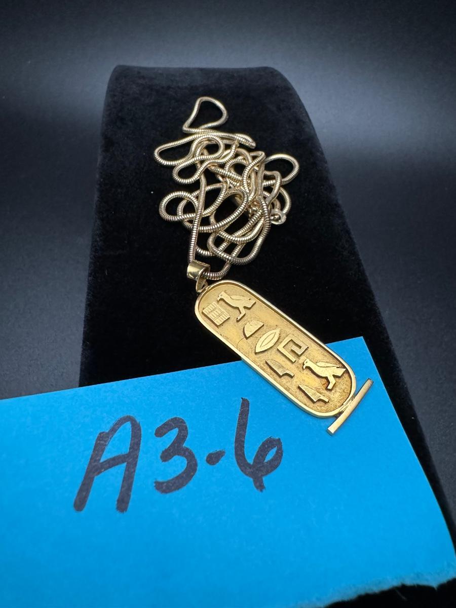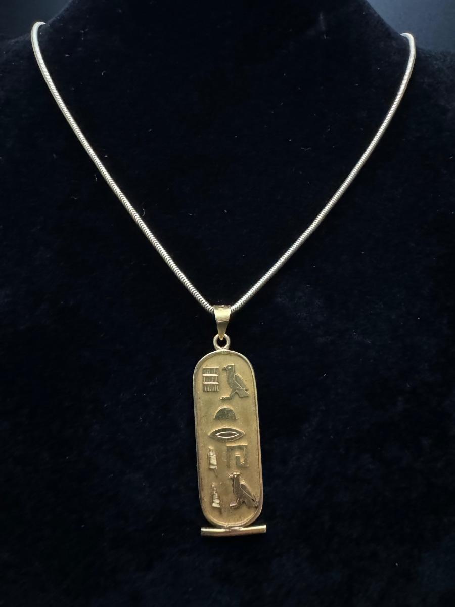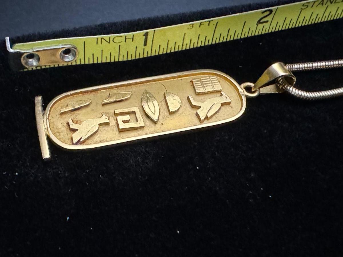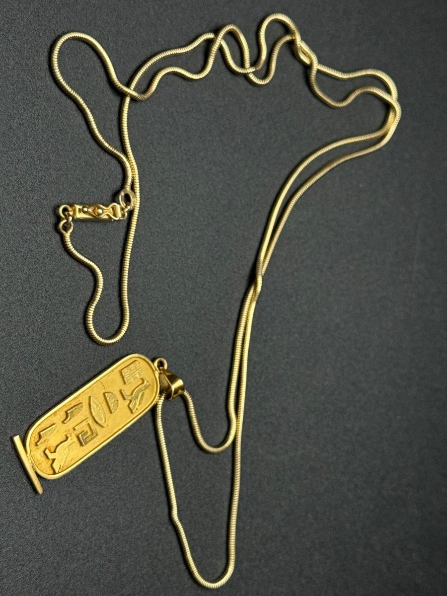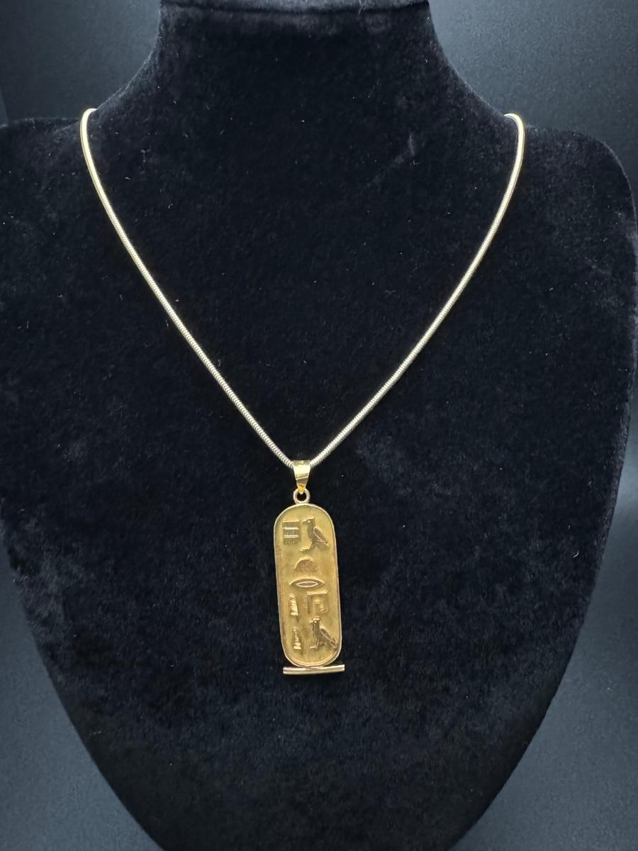 30” Gold Chain & Pendant with Egyptian Hieroglyphs