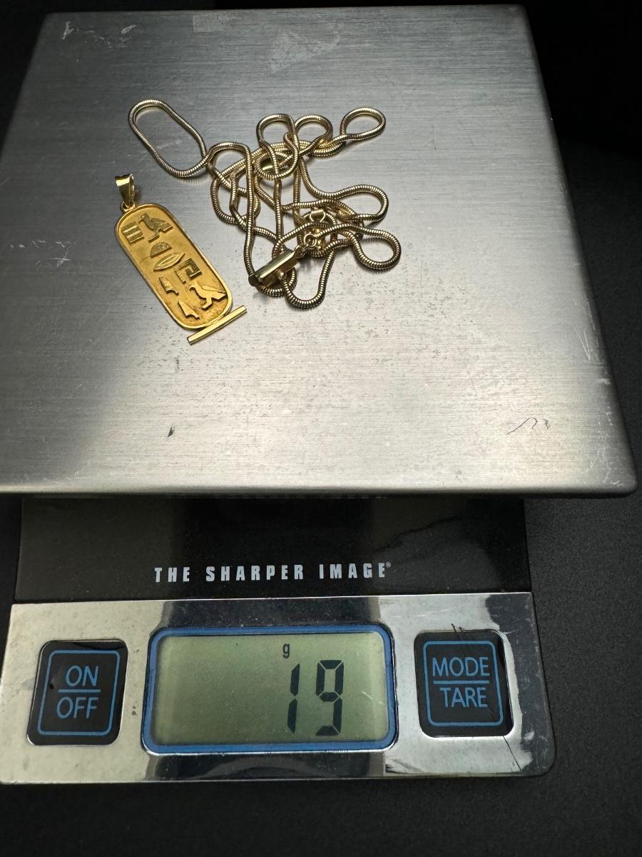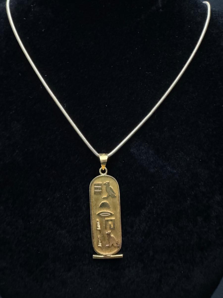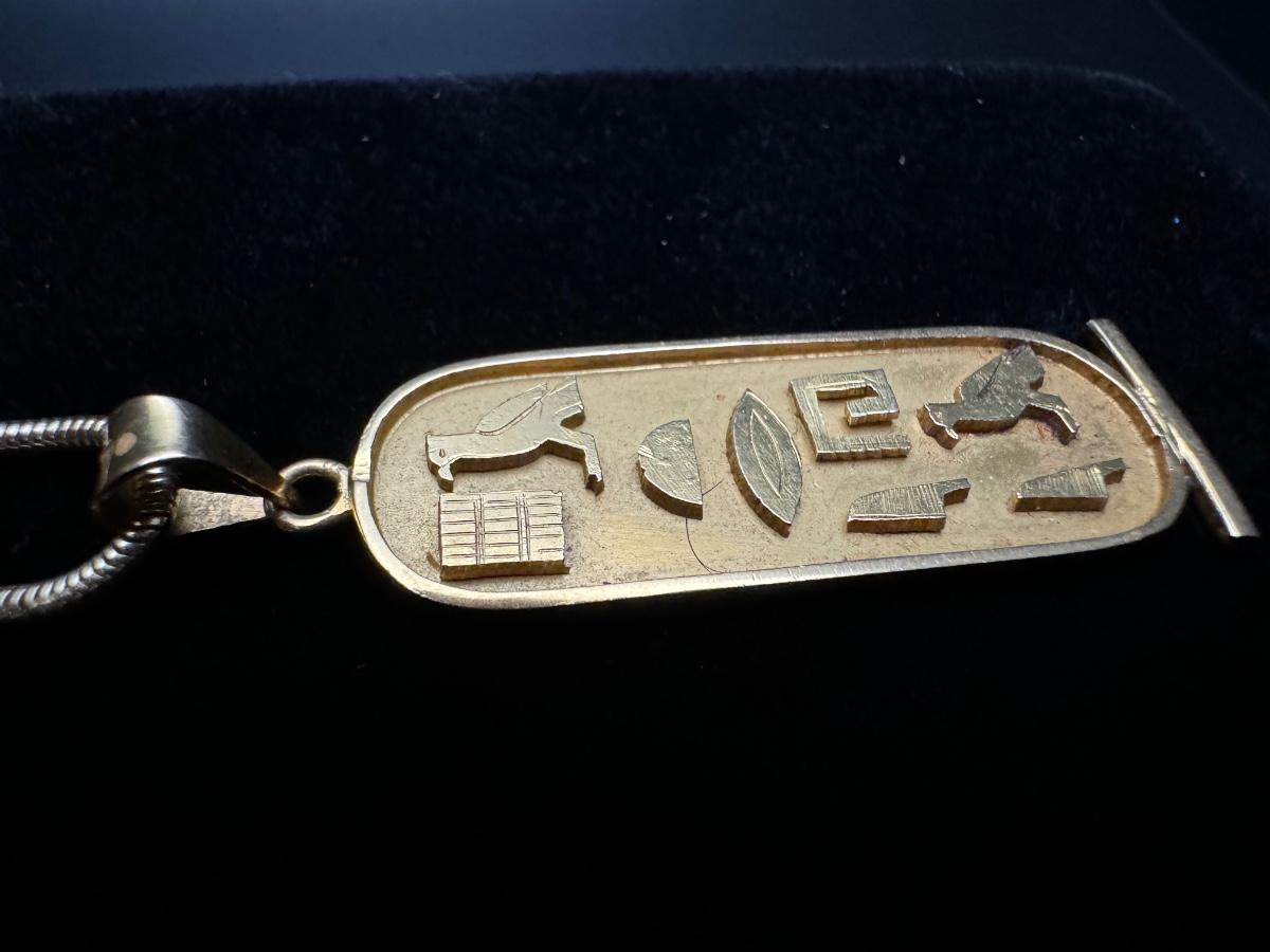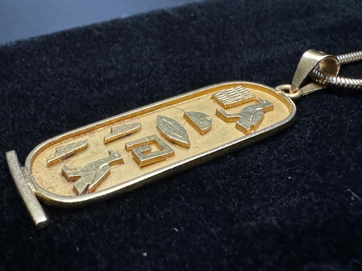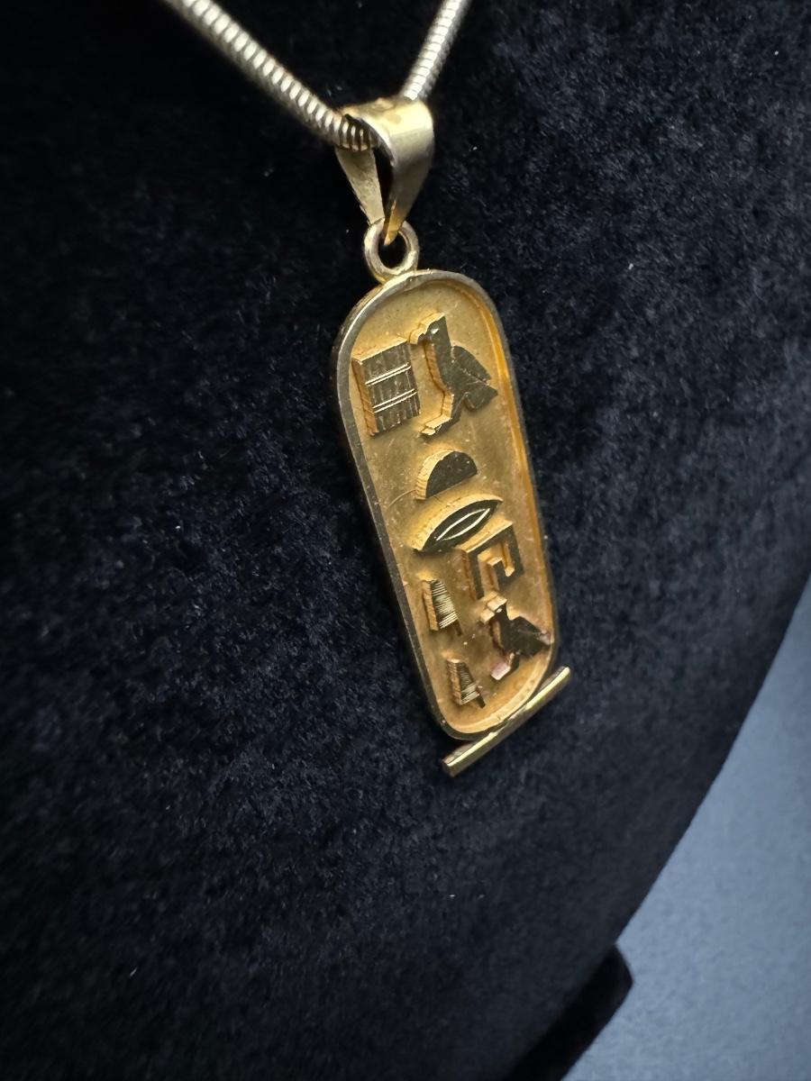 30” Gold Chain & Pendant with Egyptian Hieroglyphs