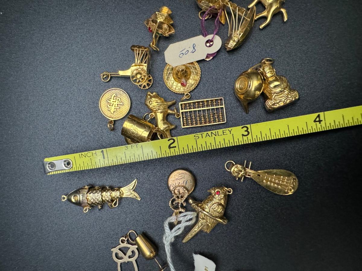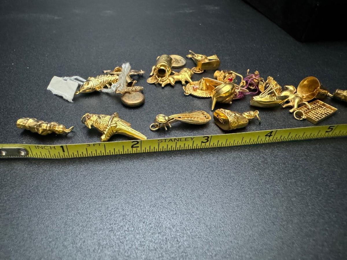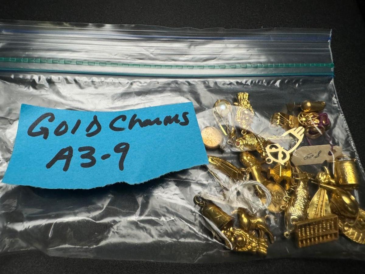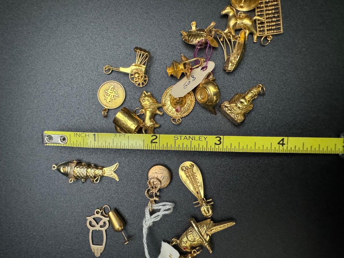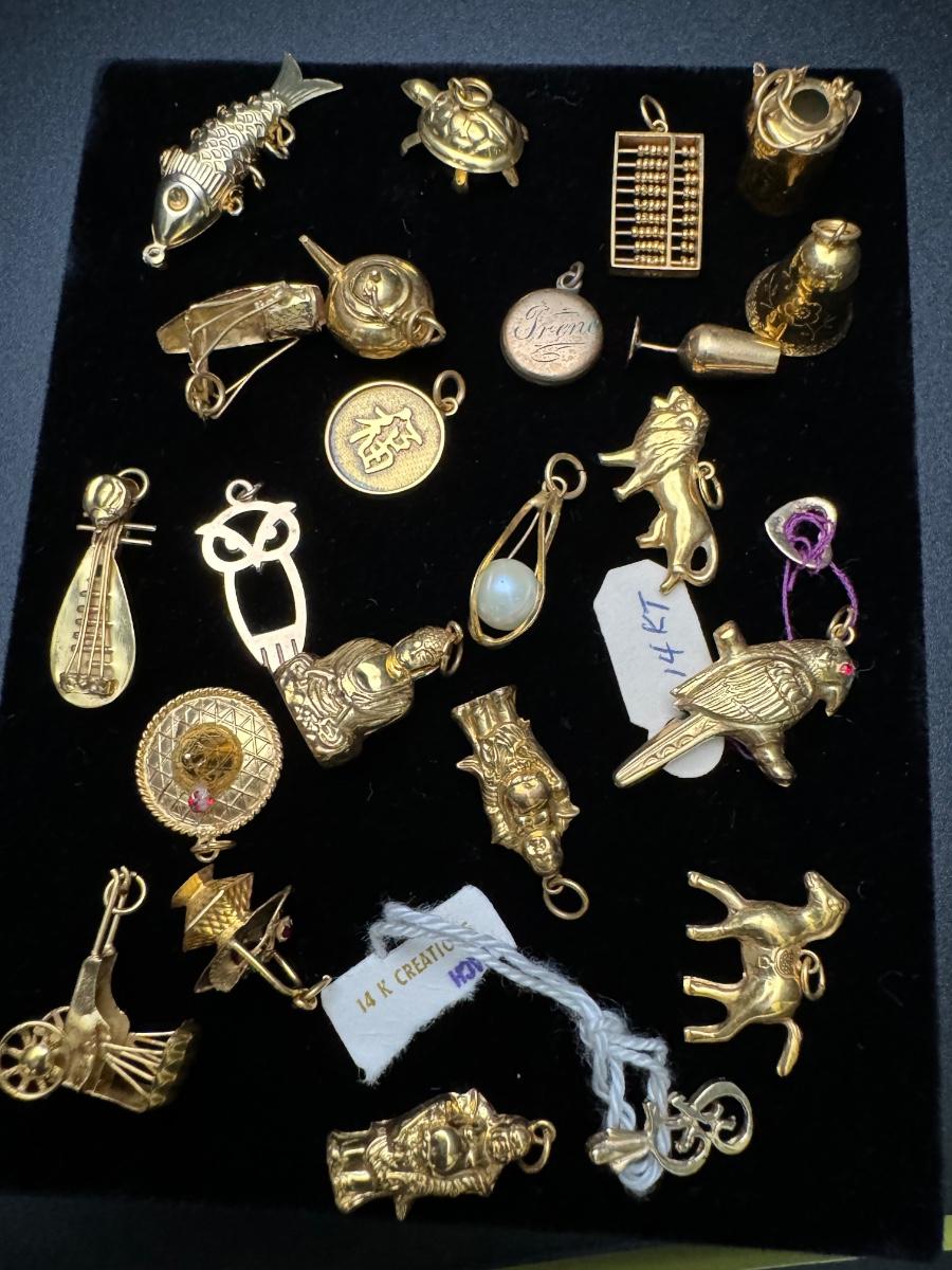 Buying as is, as found in this wonderful estate. See MANY PHOTOS for Content, Condition & Dimensions. NEVER a Buyer's Premium or Credit Card Fee. All "lots" start at just $10 and sell with No Reserve to the highest bidder. Most charms are stamped 14K.