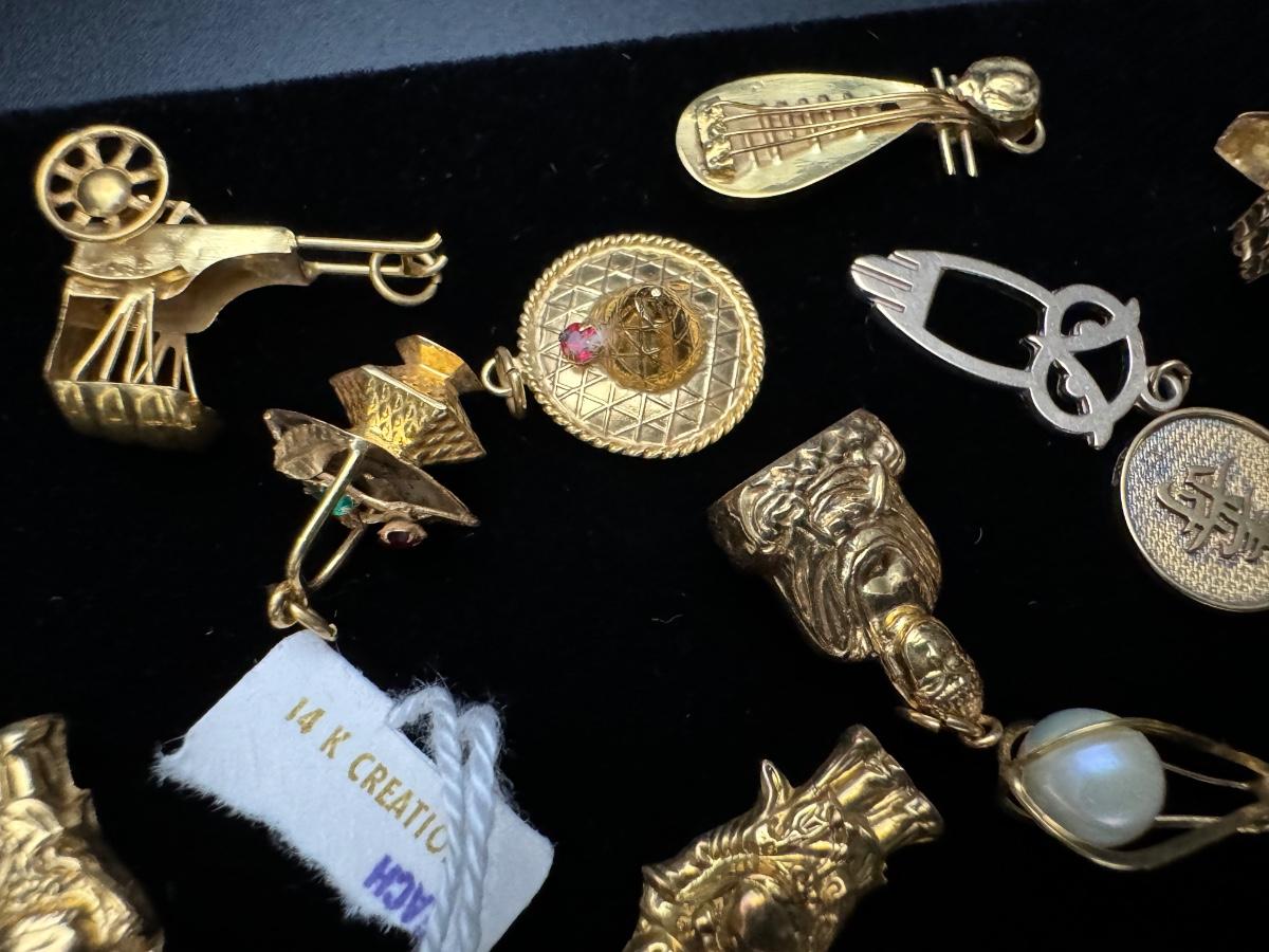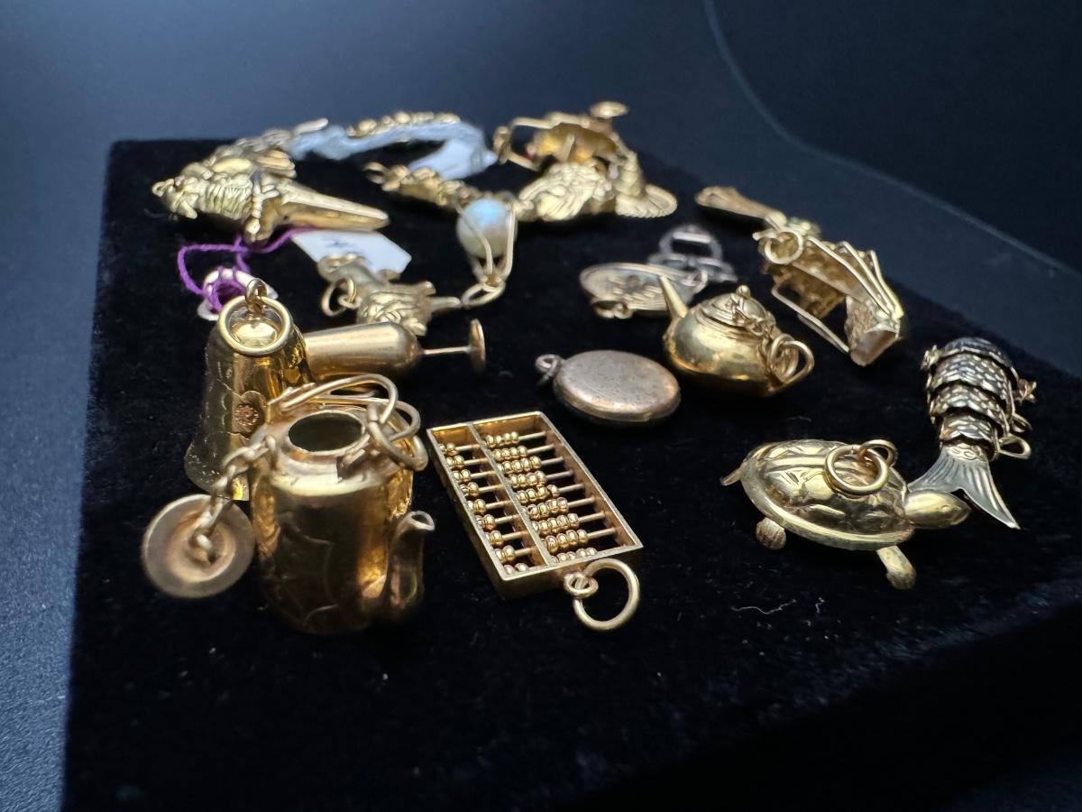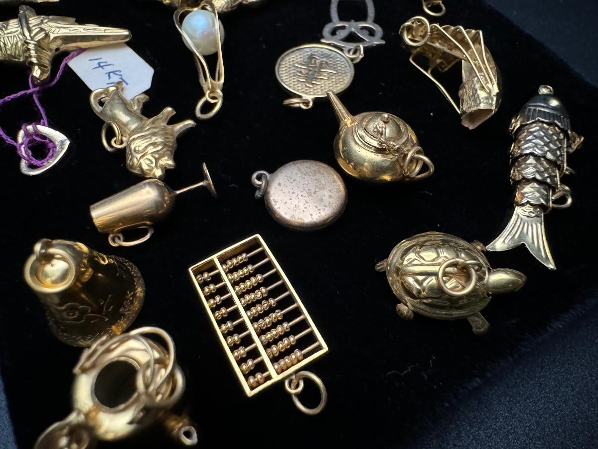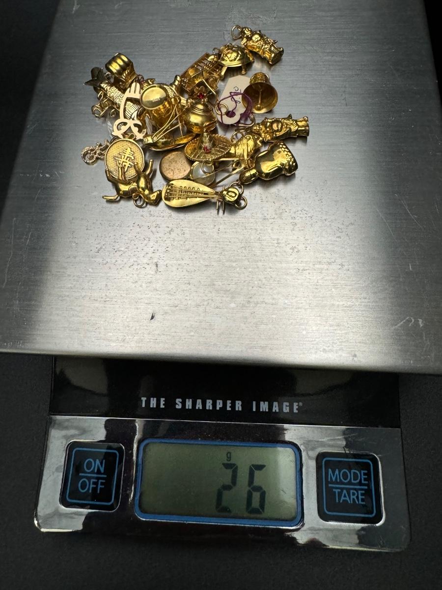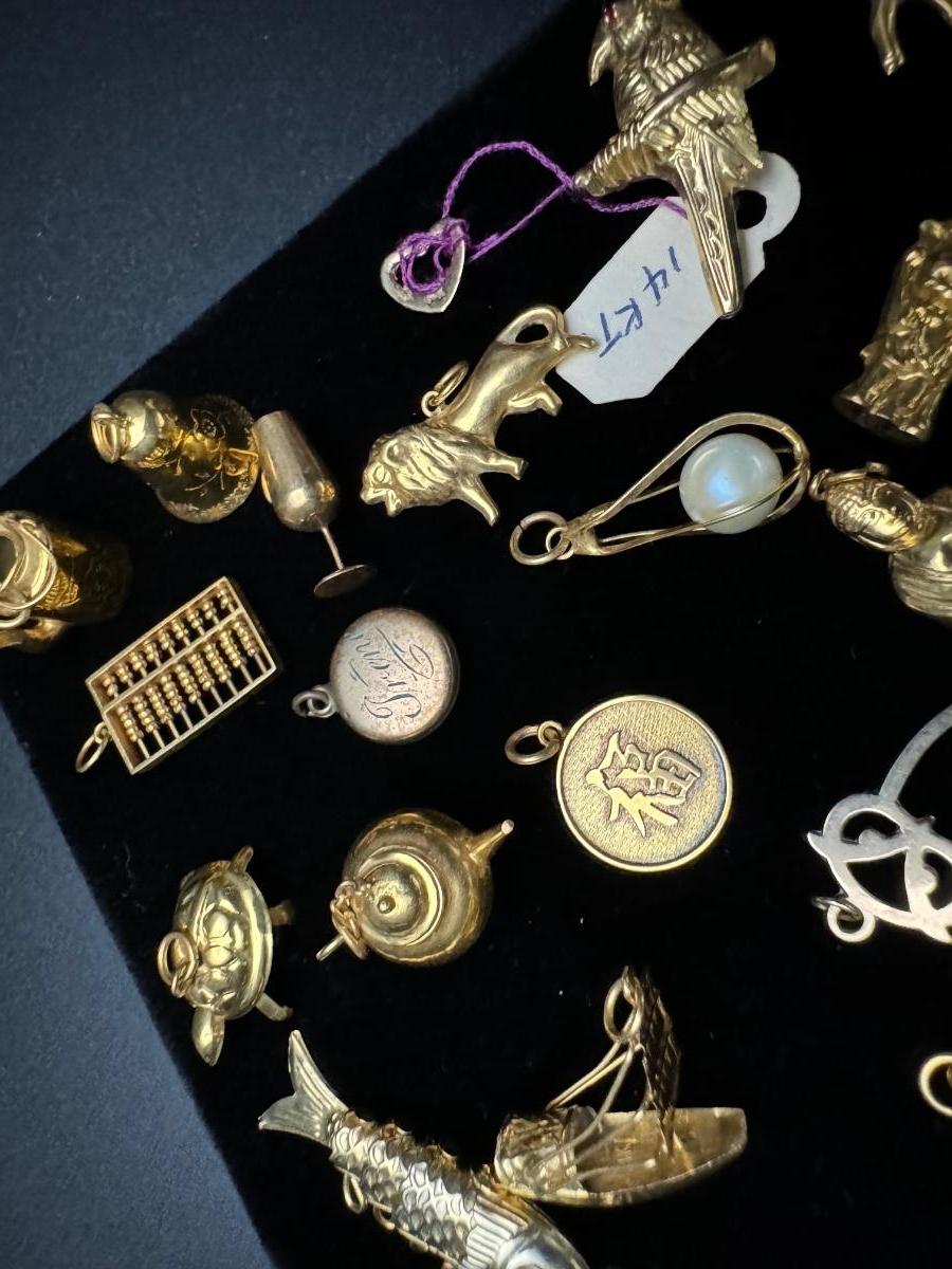 Buying as is, as found in this wonderful estate. See MANY PHOTOS for Content, Condition & Dimensions. NEVER a Buyer's Premium or Credit Card Fee. All "lots" start at just $10 and sell with No Reserve to the highest bidder. Most charms are stamped 14K.