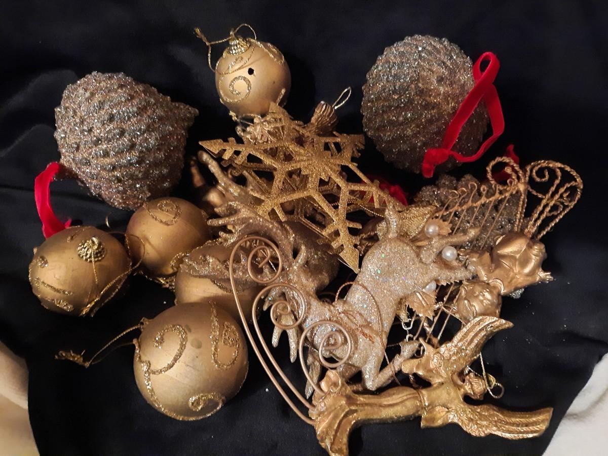 Gold Christmas Ornaments Lot of 18