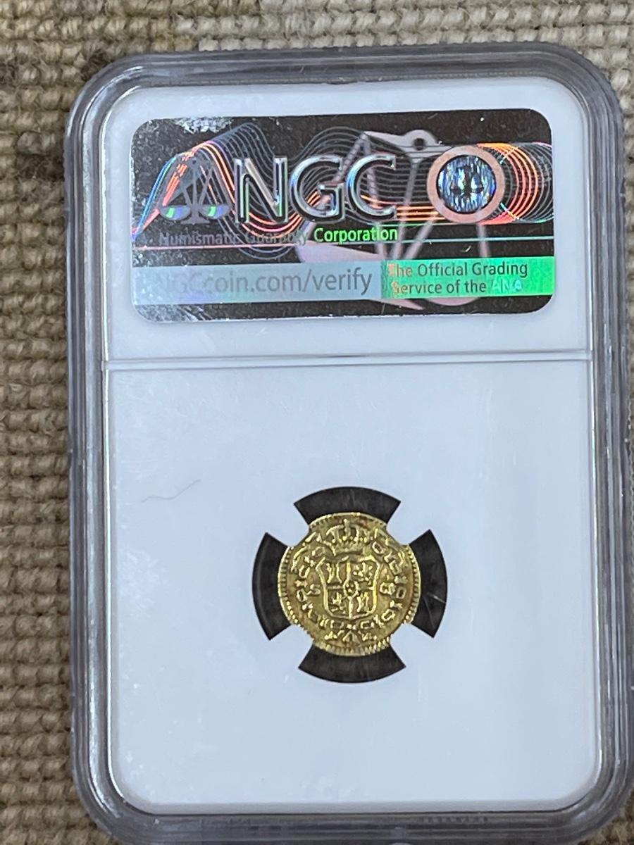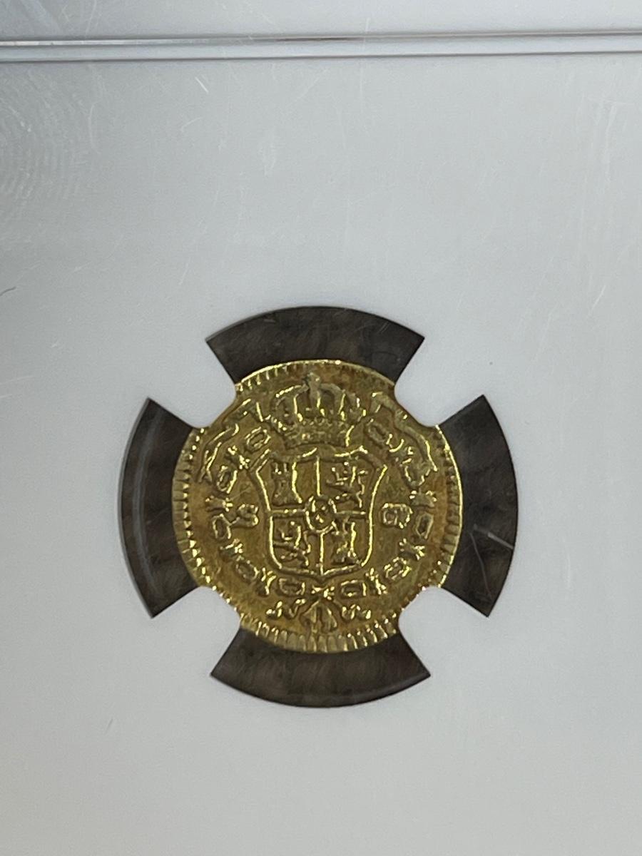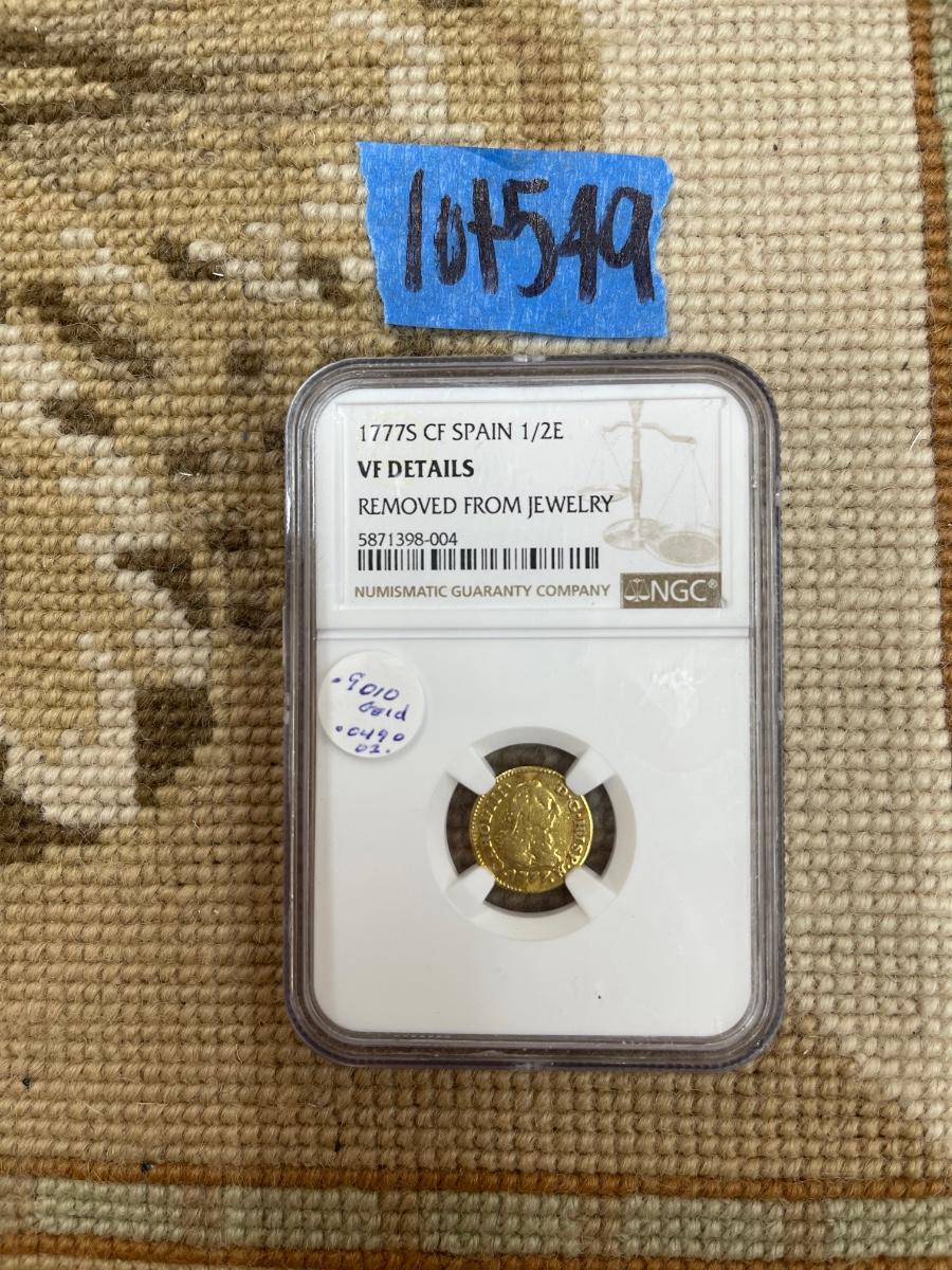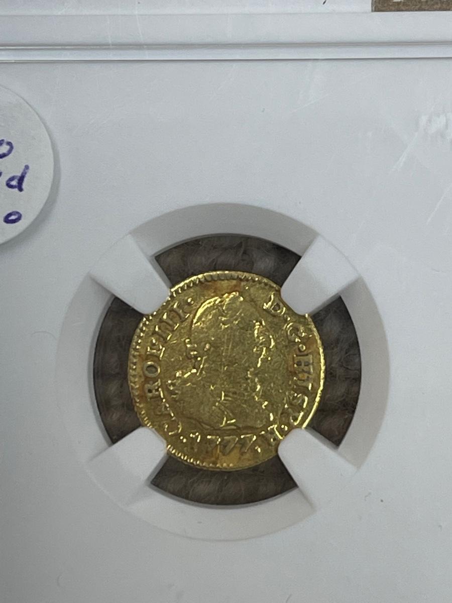 1777S NGC Cert. CF Spain 1/2 E gold coin VF details (.9010 gold).