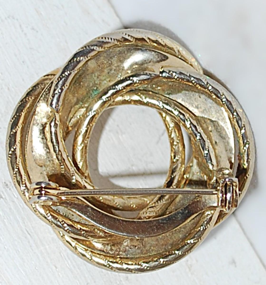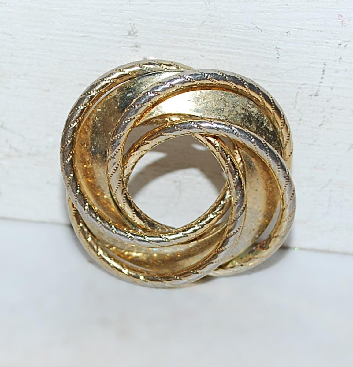 Gold Colored CONCENTRIC CIRCLES BROOCH (1¼" Diam.) with Edge Grooves on a Gold Tone Setting