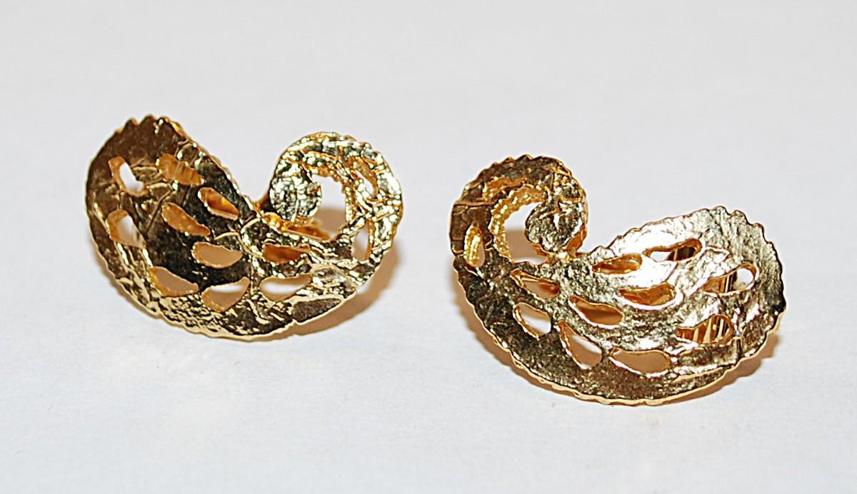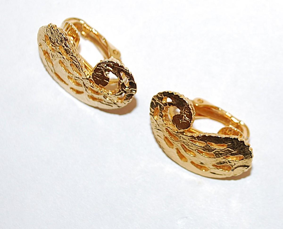 Gold Colored "Cornucopia" Style EARRINGS Set with SNAP Clasp