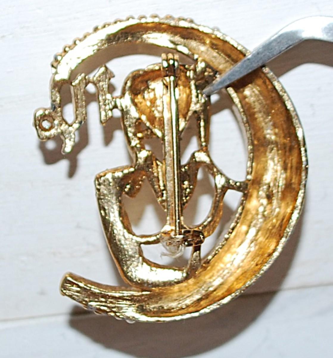 Gold Colored Egyptian "ANUBIS" Style BROOCH (1½" x 1½") with Round Faux Pearl Accent Stones on a Gold Tone Setting