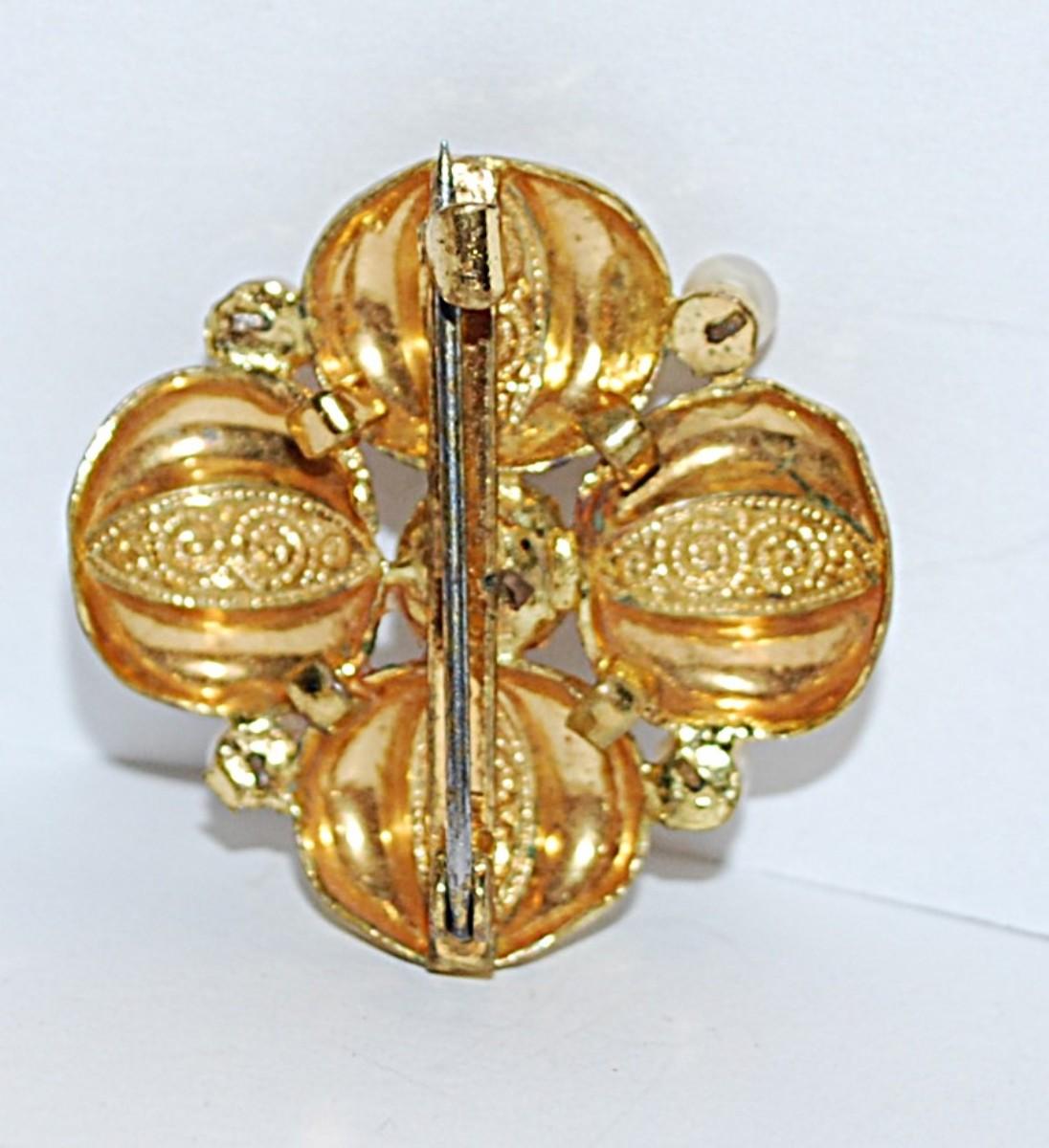 Gold Colored FLOWER BROOCH (1" Diam.) with 5 Faux Pearl Accents and Gold Tone Setting