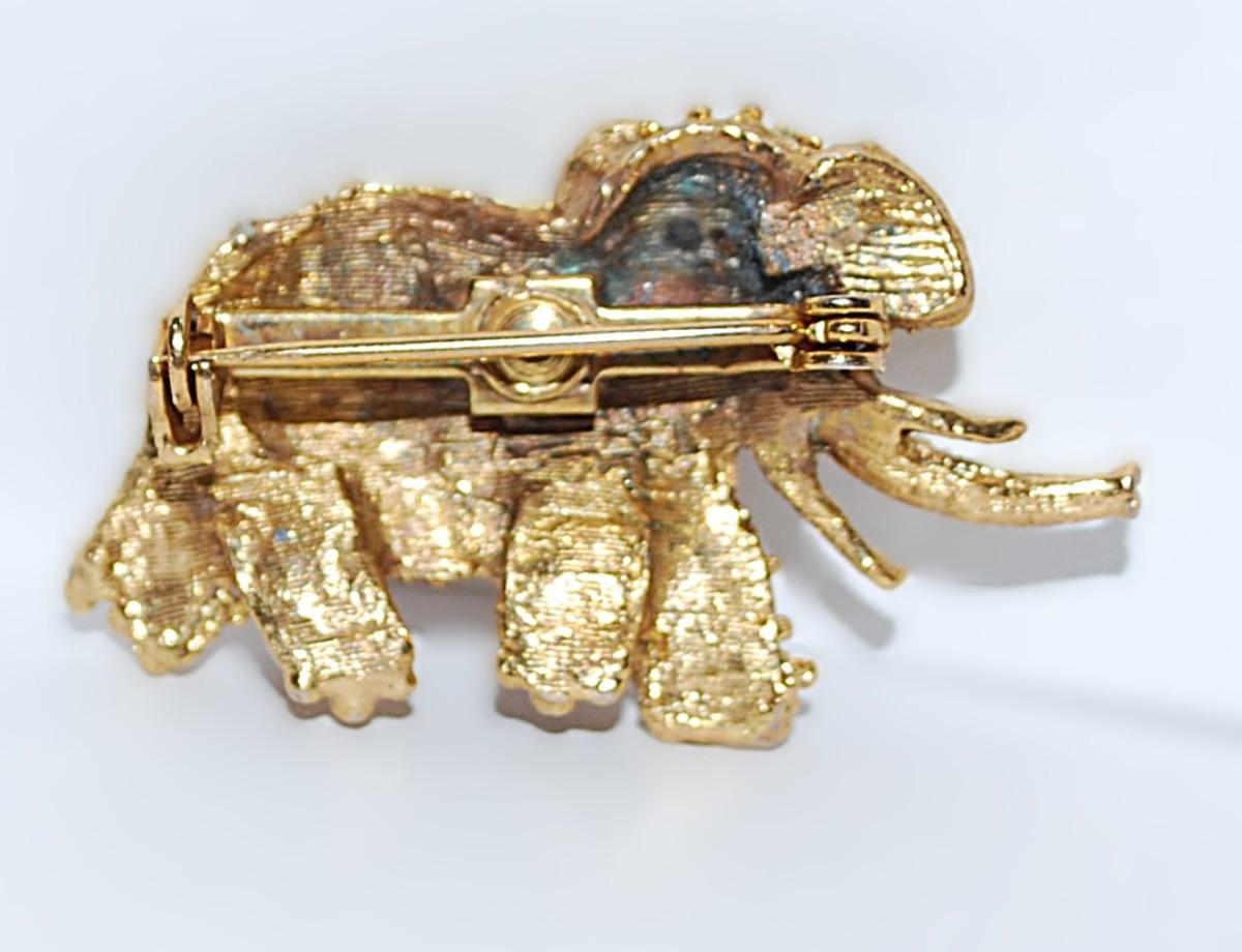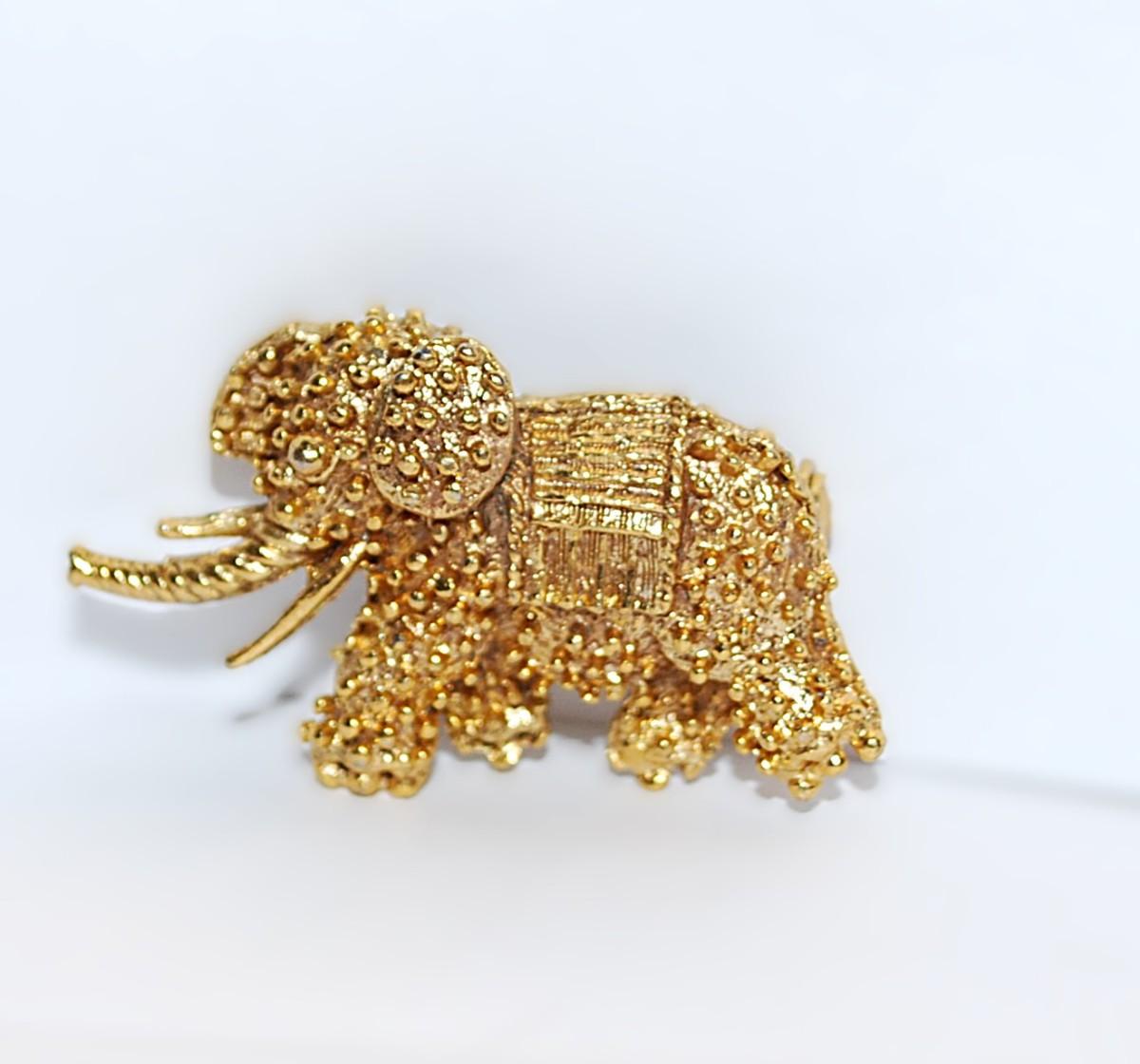 Gold Colored Heavily NUBBED ELEPHANT BROOCH (1½" x 1") with Gold Tone Setting