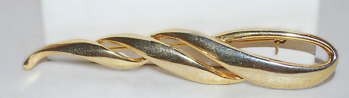 Gold Colored Long "TWISTED" BROOCH (3½" x ¾") on a Gold Tone Setting