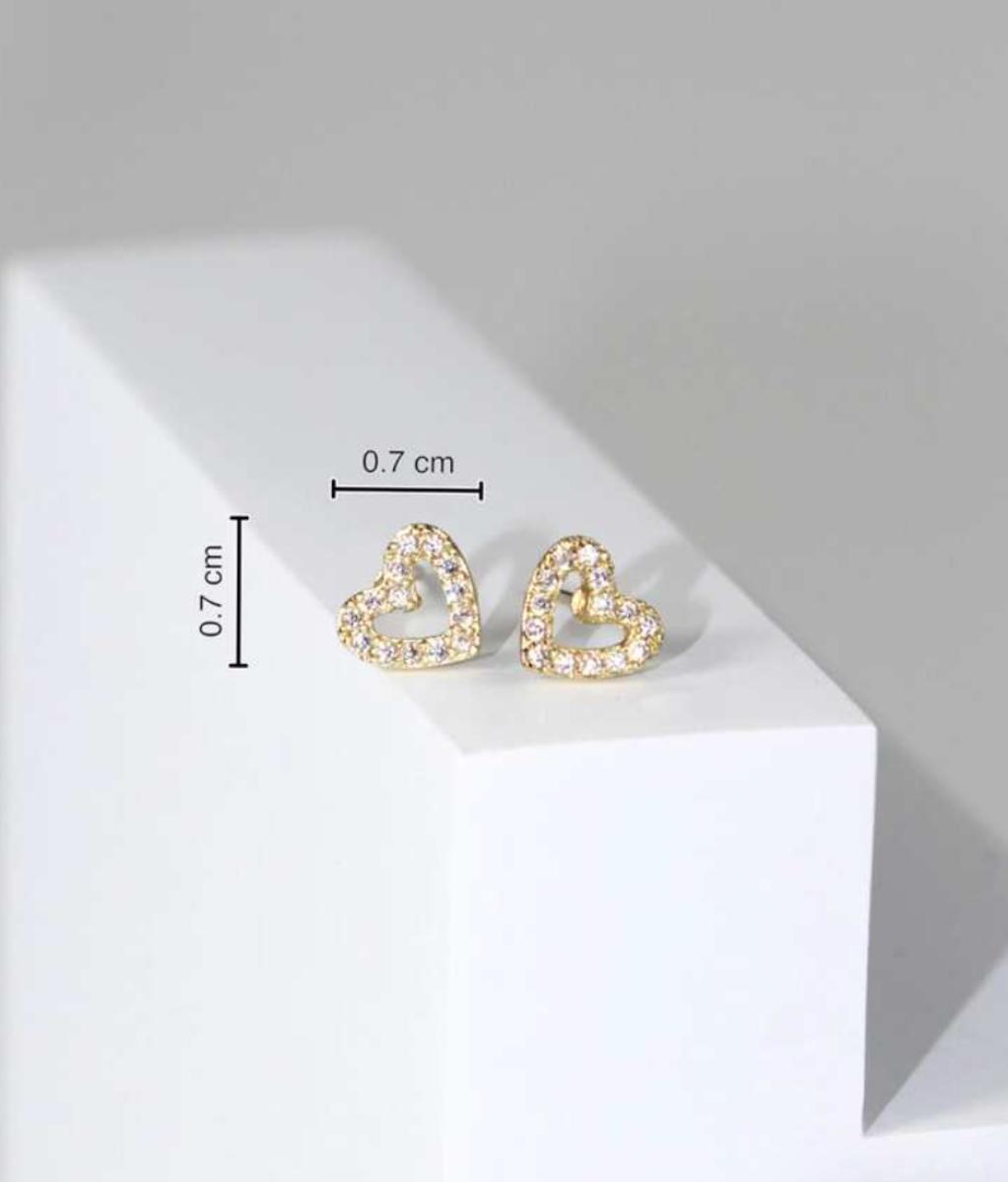 Gold Cubic Zirconia Heart Design Stud Earrings Valentines