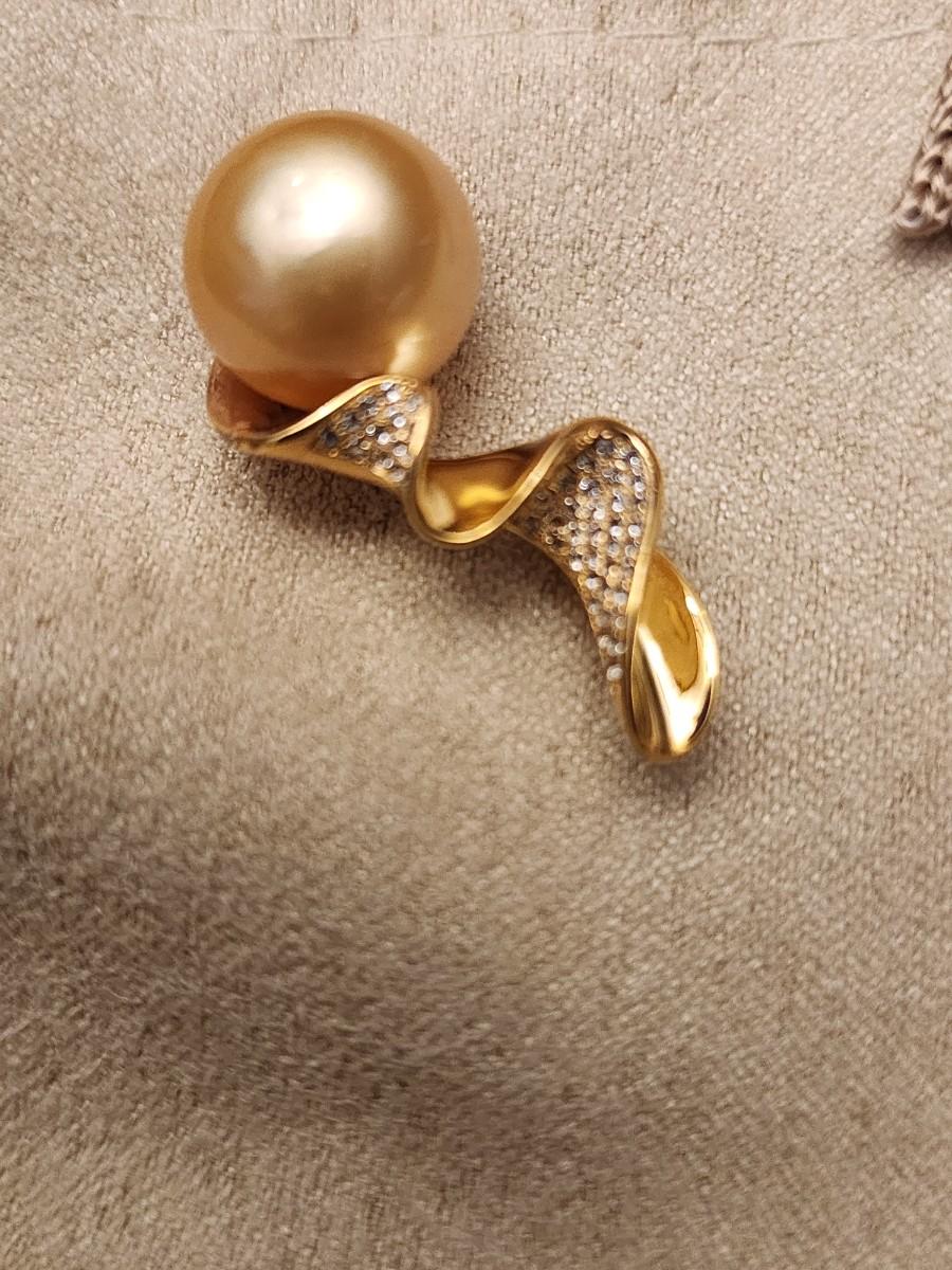 Gold cultured sea pearl pendant
