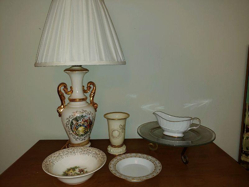 Please Don't Let The Sales Tax etc Scare You Away; There Is None; Can Pay In Cash. Gold décor; which includes fancy lamp 28” high x 15” wide Final Estate Sale! Everything Must Go! Rock Bottom Prices!