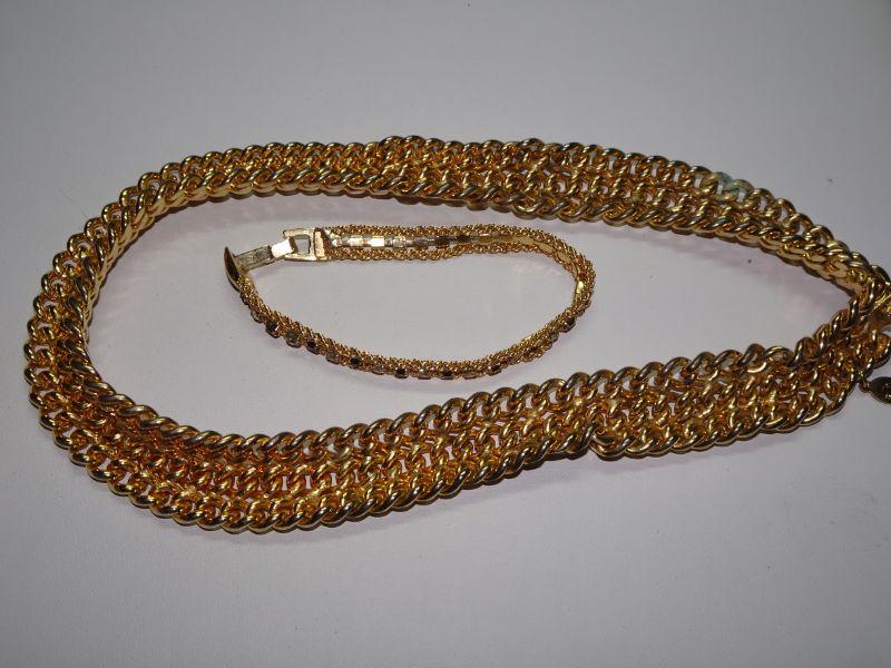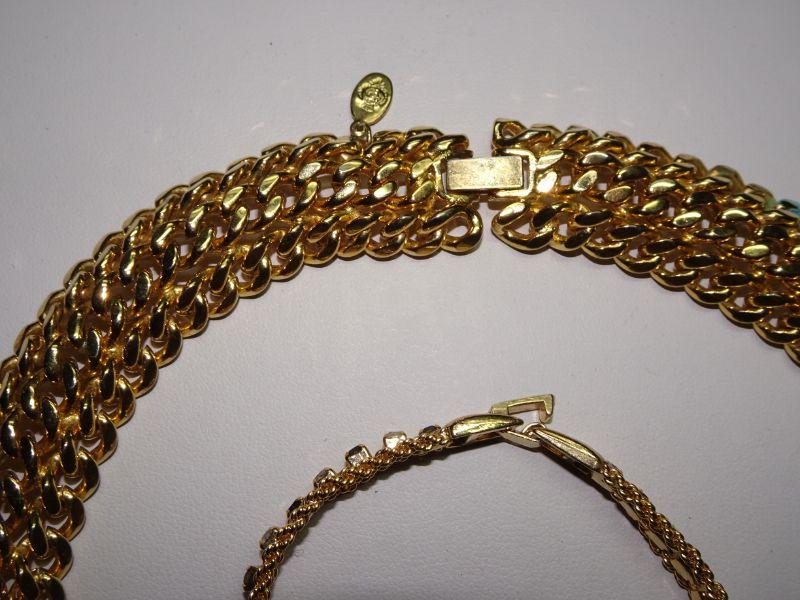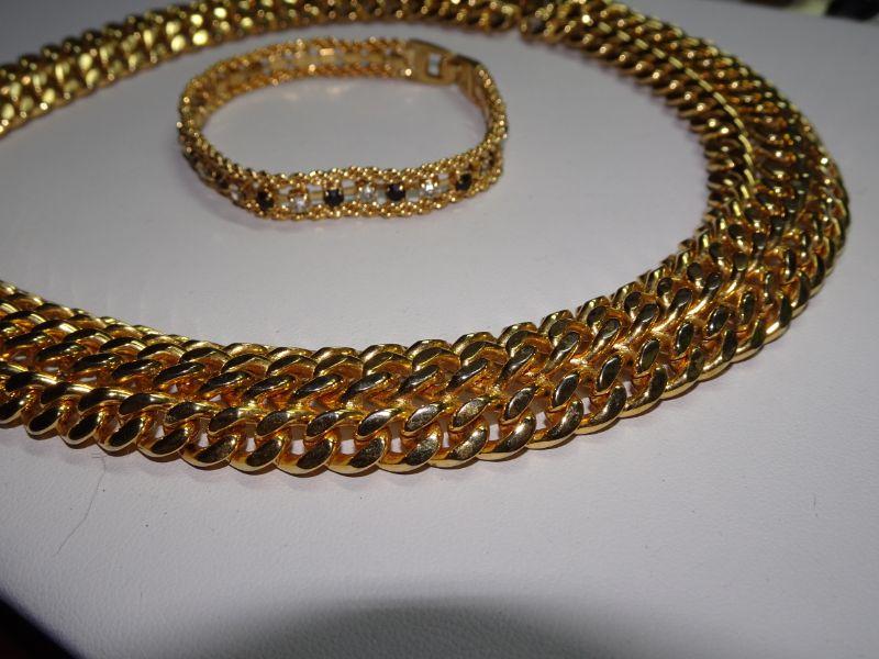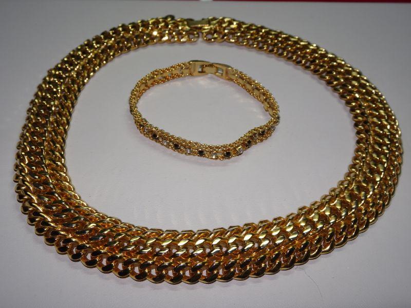 Gold Dynasty Style Necklace, Rhinestone Gold Tone Bracelet