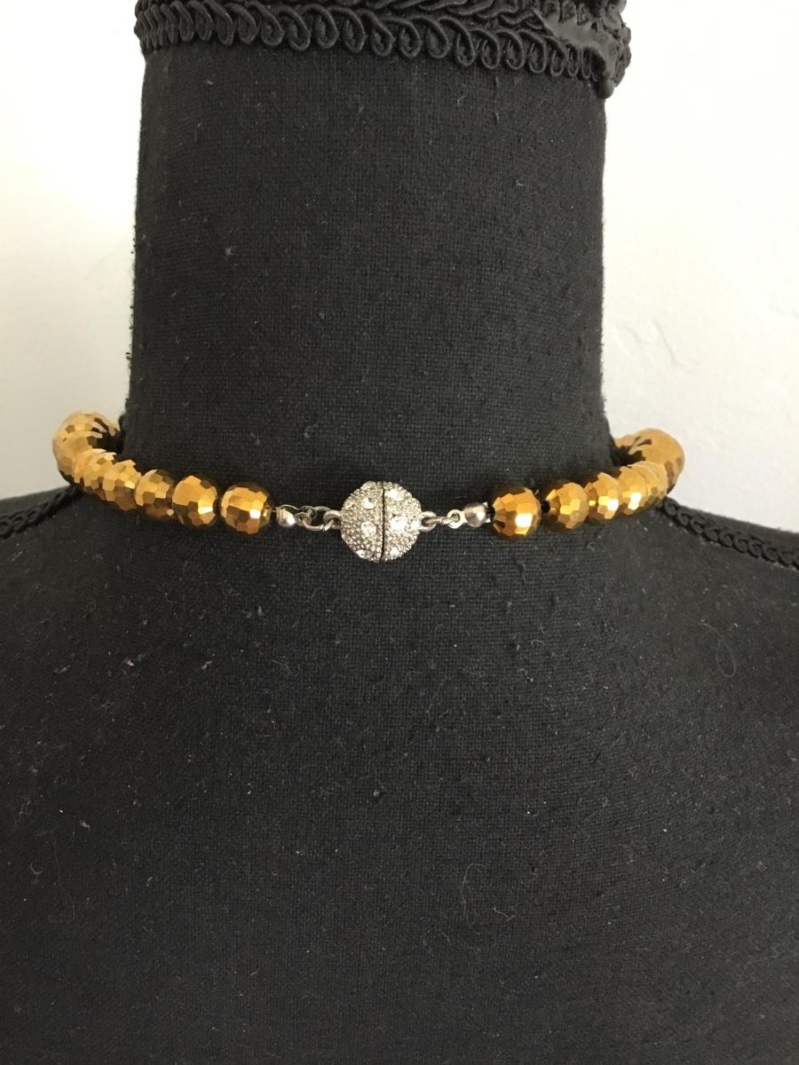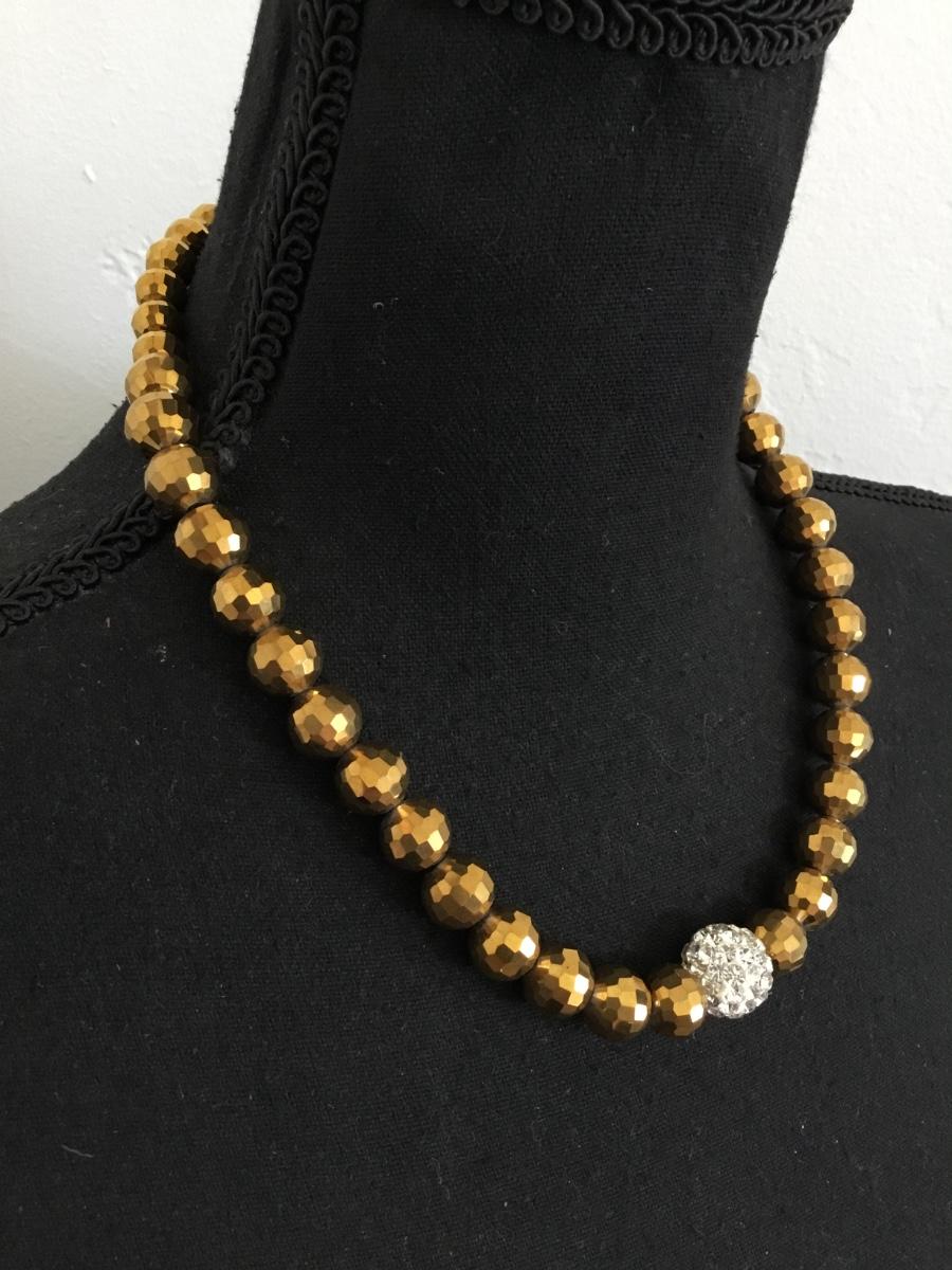 Gold faceted, glass bead, crystal rhinestone, bead statement, necklace